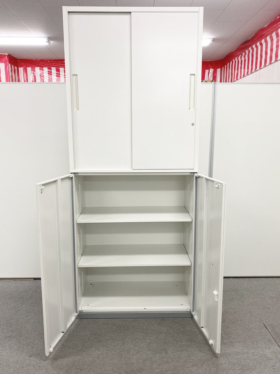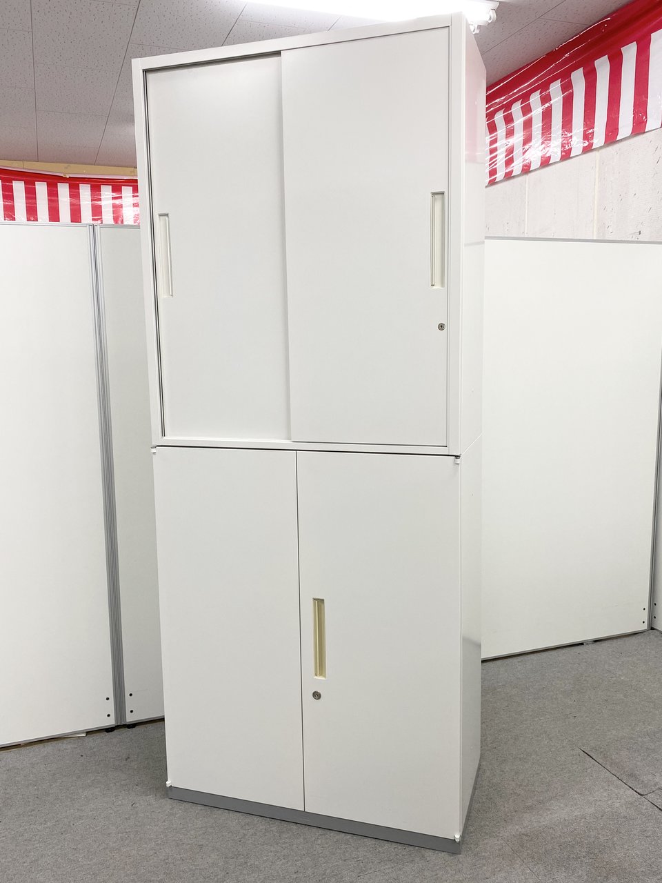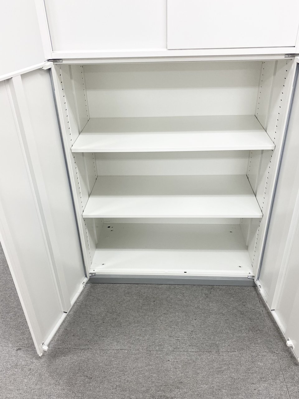 【鍵付】両開きと引き違いの書庫セット!省スペースで多くの書類を収納可能です! イナバ/TFシリーズ/ホワイト- 足立・葛飾店