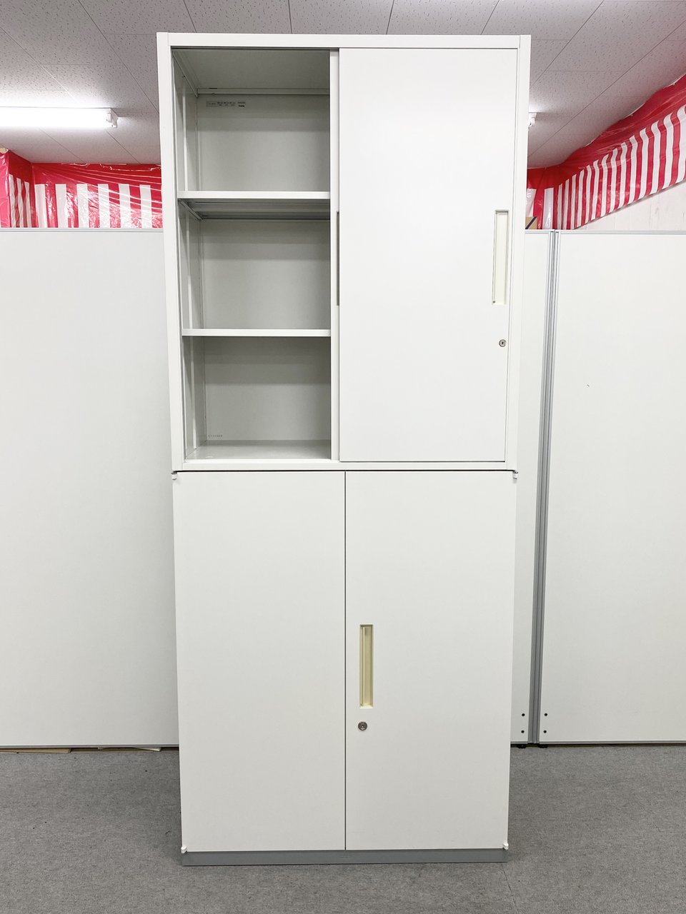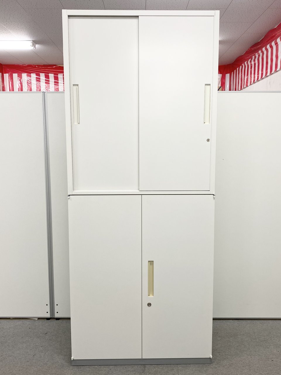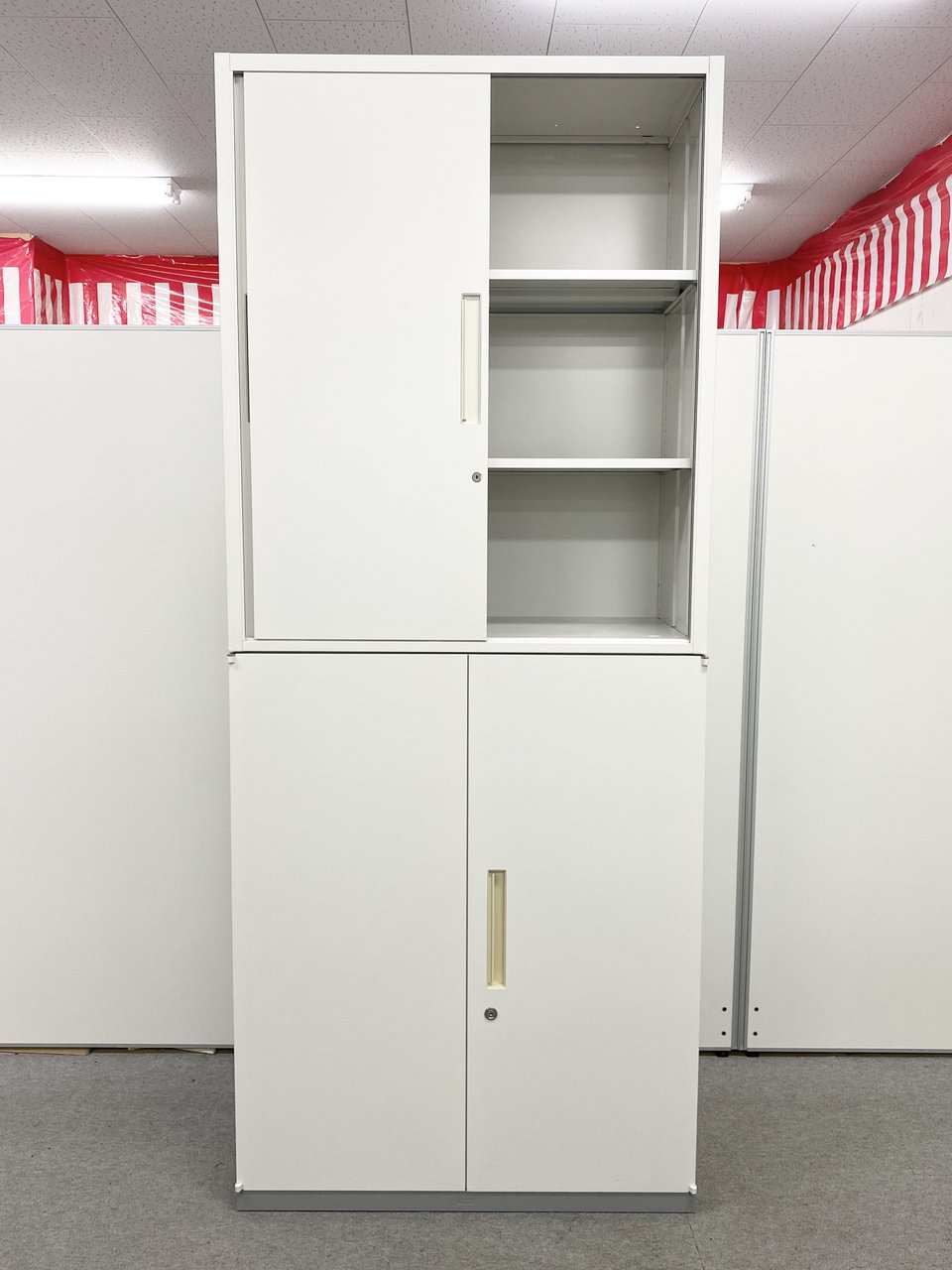【鍵付】両開きと引き違いの書庫セット!省スペースで多くの書類を収納可能です! イナバ/TFシリーズ/ホワイト- 足立・葛飾店