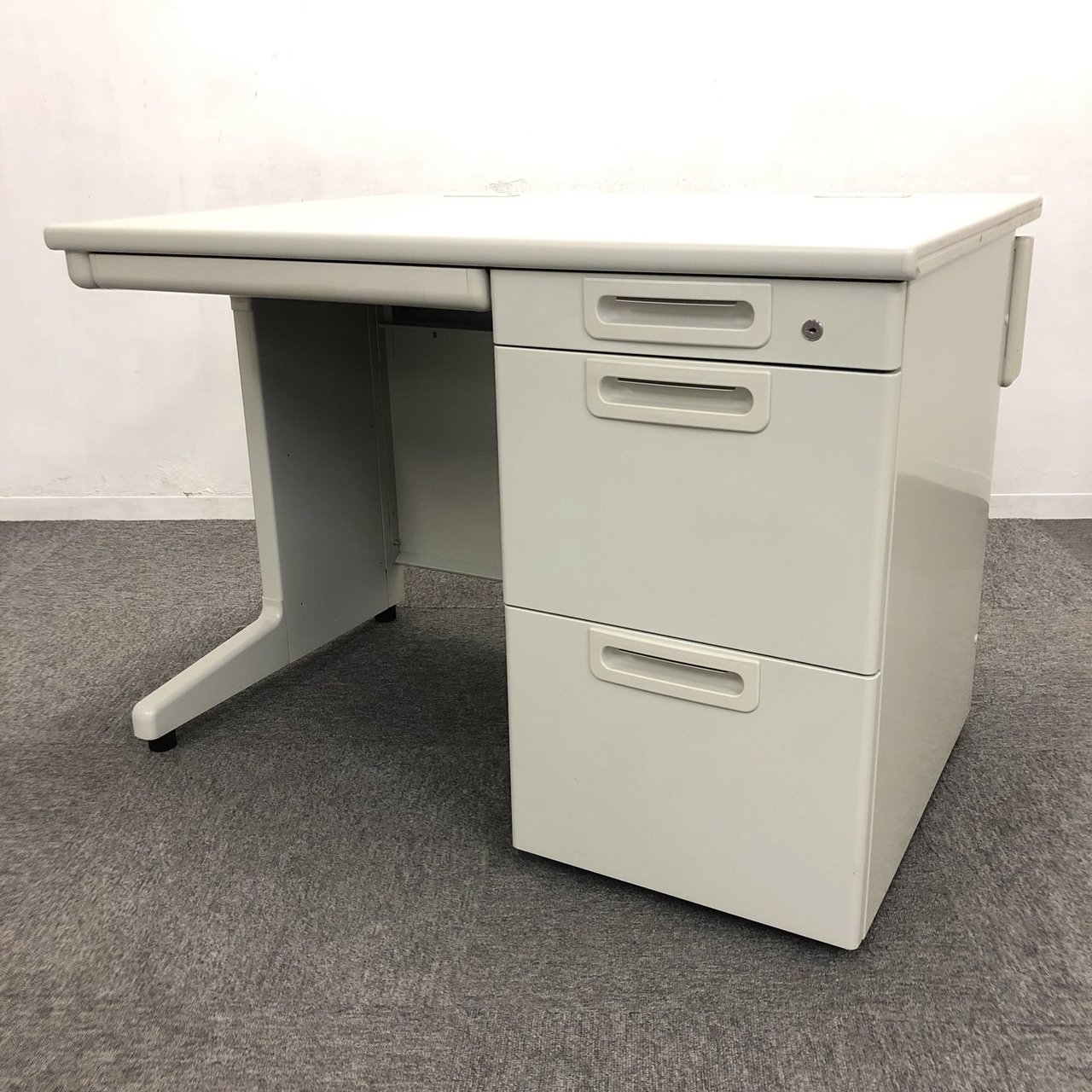 ※奥行要確認!【収納とワークスペースの両立!横幅1000㎜サイズ!】■プラス(PLUS) LAデスクシリーズ 片袖机 W1000×D600㎜ ■ニューグレー ■シリンダー錠【2508】弊社使用欄【A01031273】