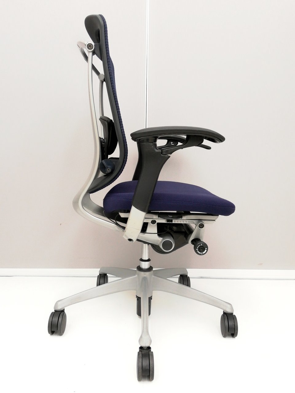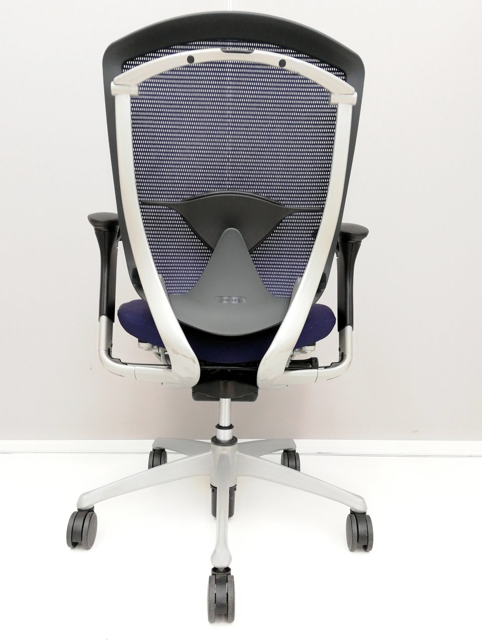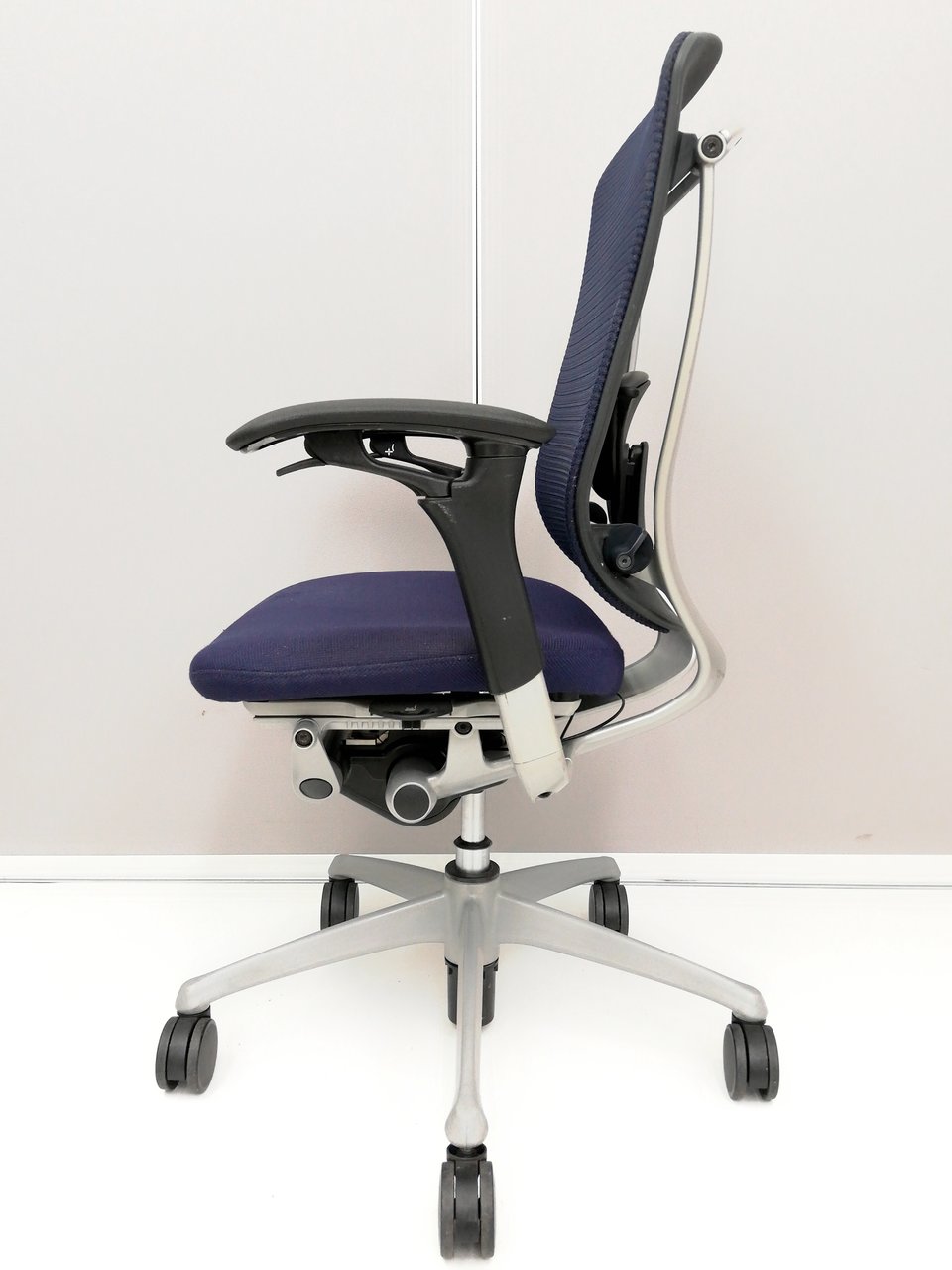 【オカムラ製の最高級チェアが残り1脚限りです!!】オフィスバスターズ 東大阪店 オカムラ製 コンテッサ シリーズ ダークブルー アジャストアーム※可動肘 背/座面メッシュ ランバー 世界で認められた革新的タスクチェア!人間工学に基づいた快適な座り心地を実現! 肘付きハイバックチェア!! 中古 外部倉庫品