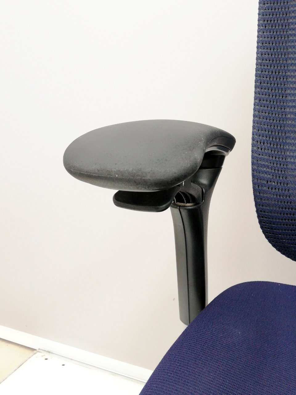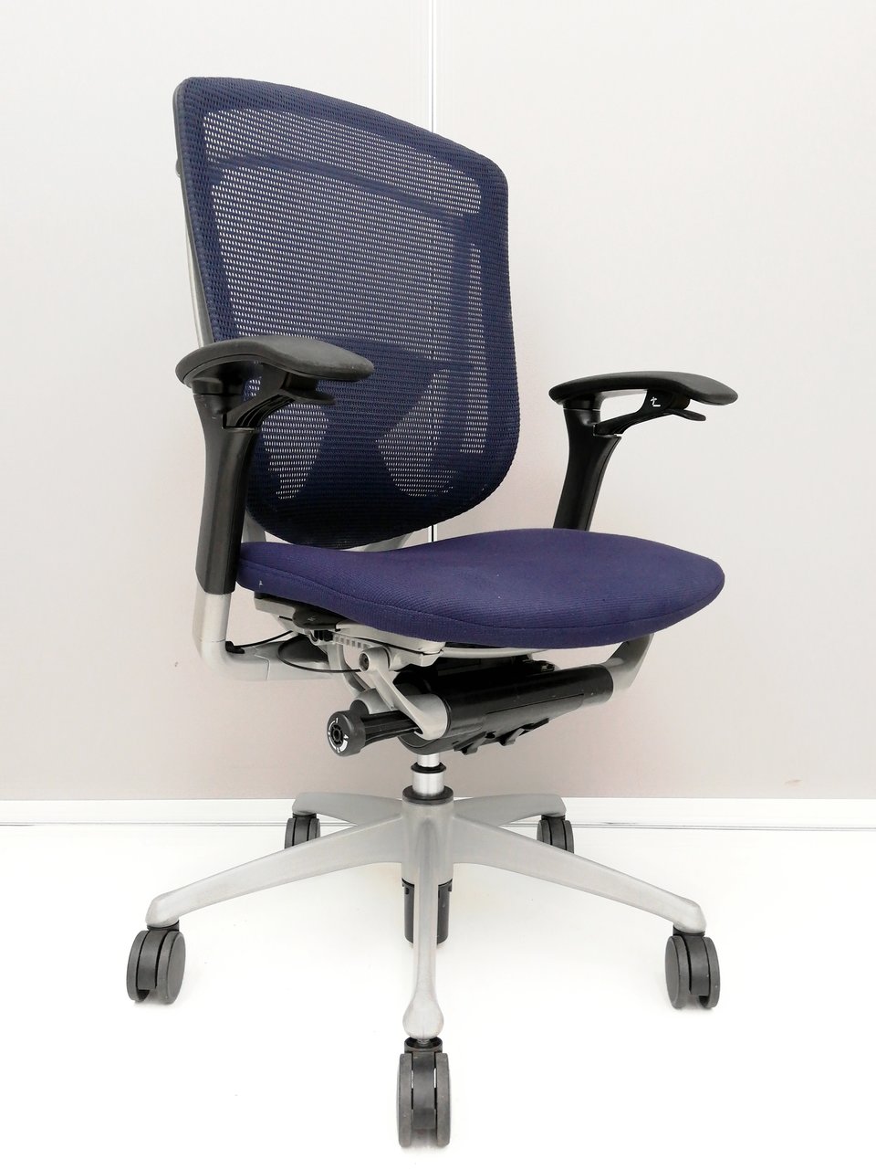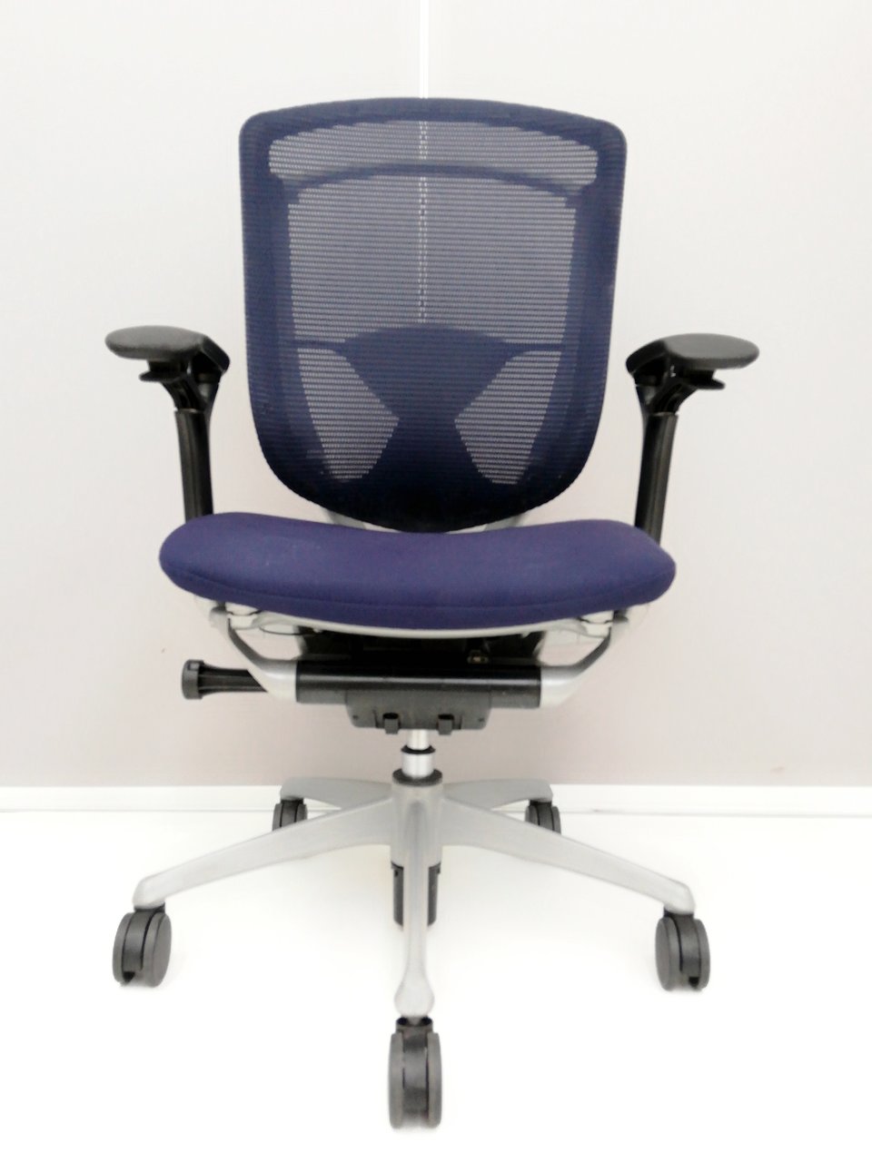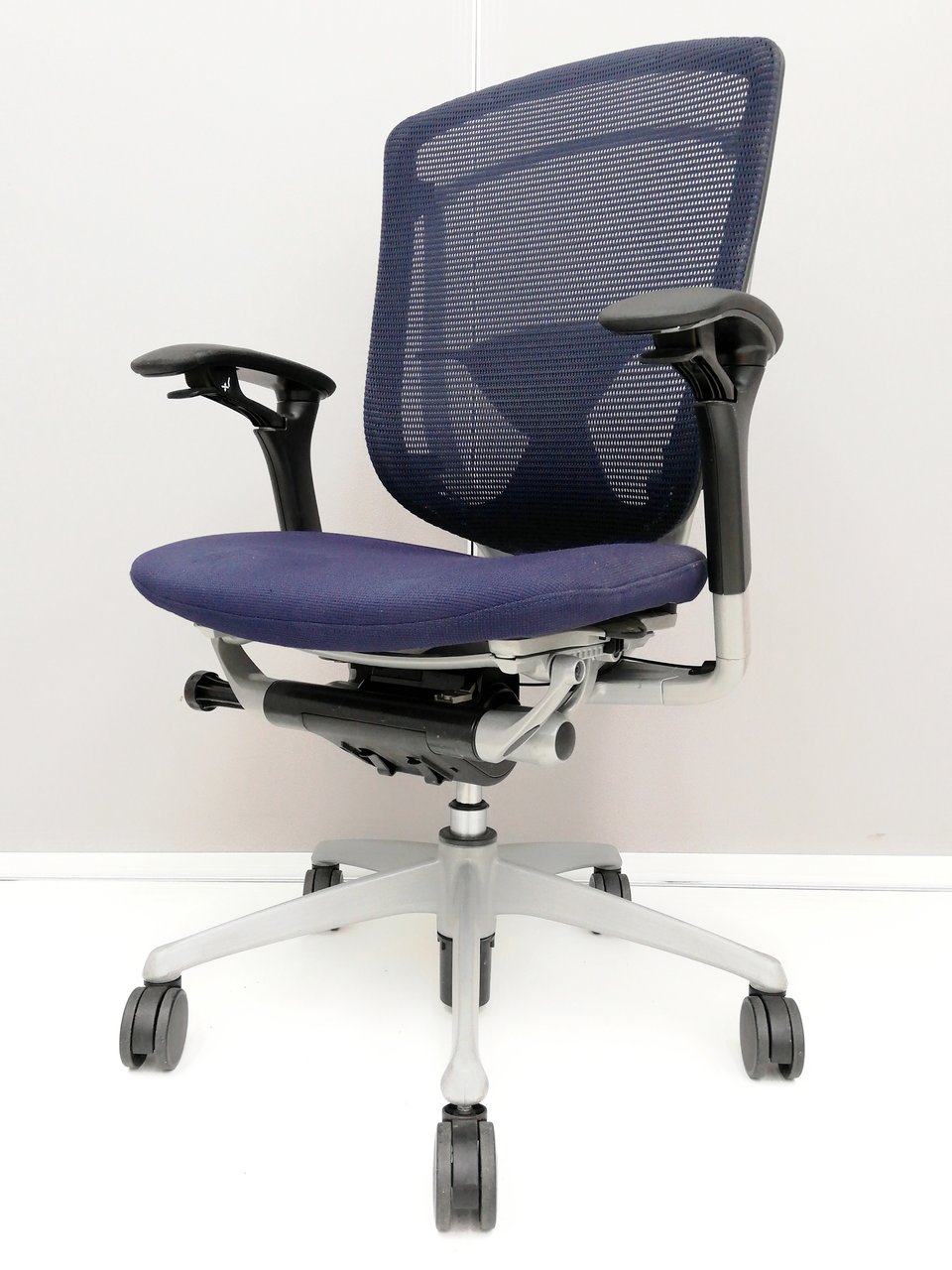【オカムラ製の最高級チェアが残り1脚限りです!!】オフィスバスターズ 東大阪店 オカムラ製 コンテッサ シリーズ ダークブルー アジャストアーム※可動肘 背/座面メッシュ ランバー 世界で認められた革新的タスクチェア!人間工学に基づいた快適な座り心地を実現! 肘付きハイバックチェア!! 中古 外部倉庫品