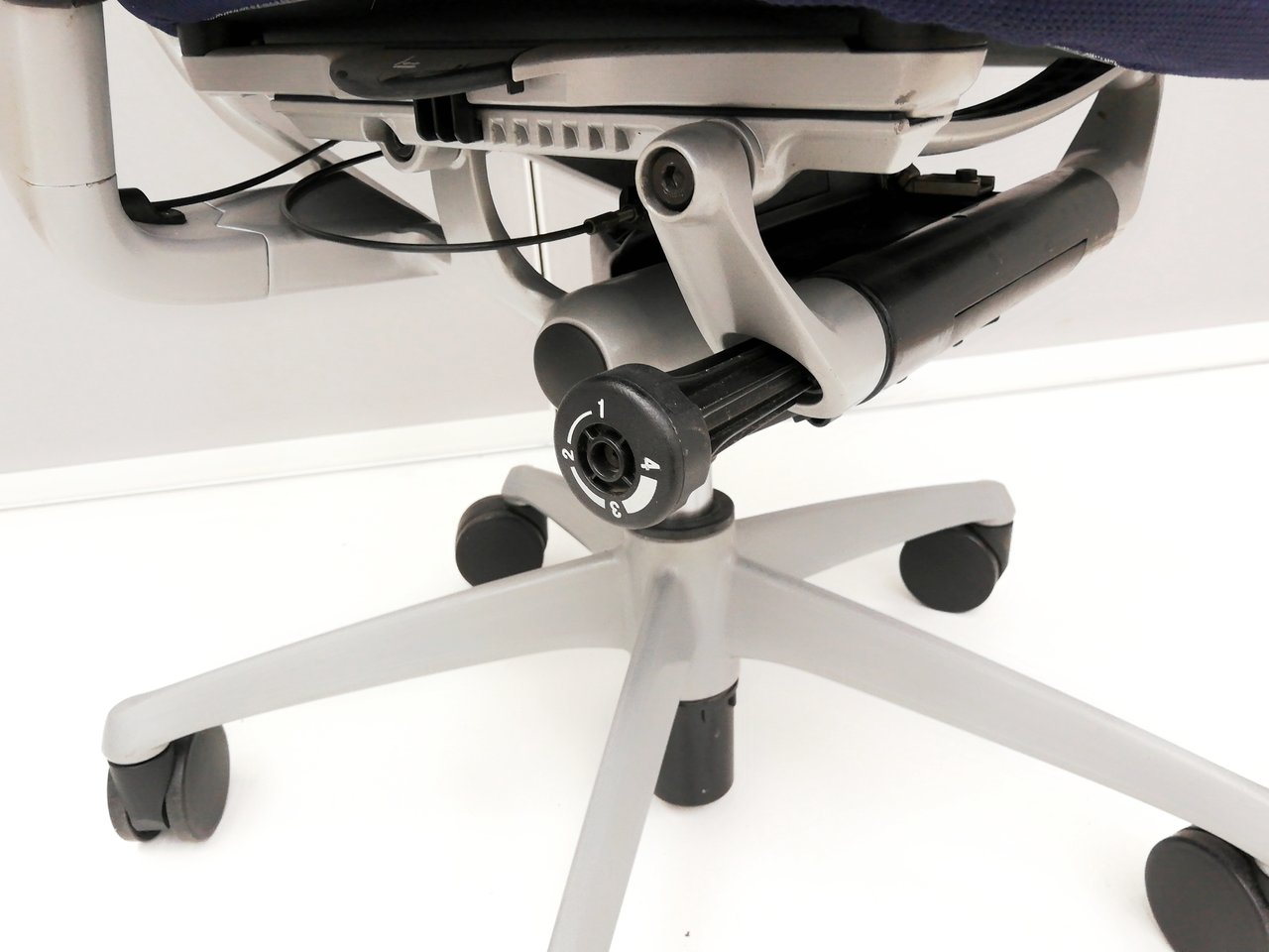- ロッキングの強弱を調整するダイヤルがございます。体型に合わせてリクライニングの固さを座ったままで調整できます。