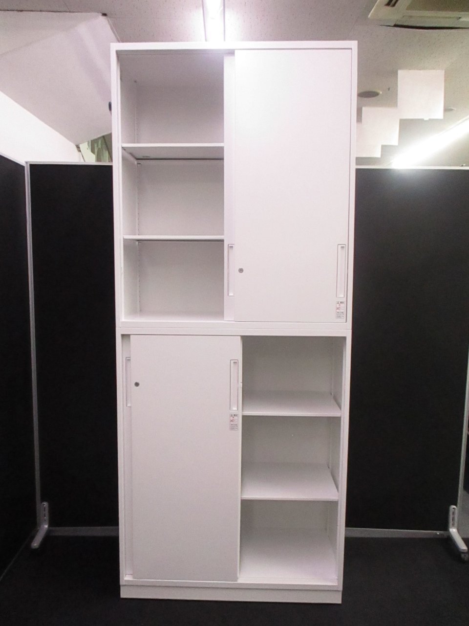 【スライド扉でスペースを有効活用!】■コクヨ製 上下引戸書庫セット ■EDIA(エディア)シリーズ ホワイト- 川崎店