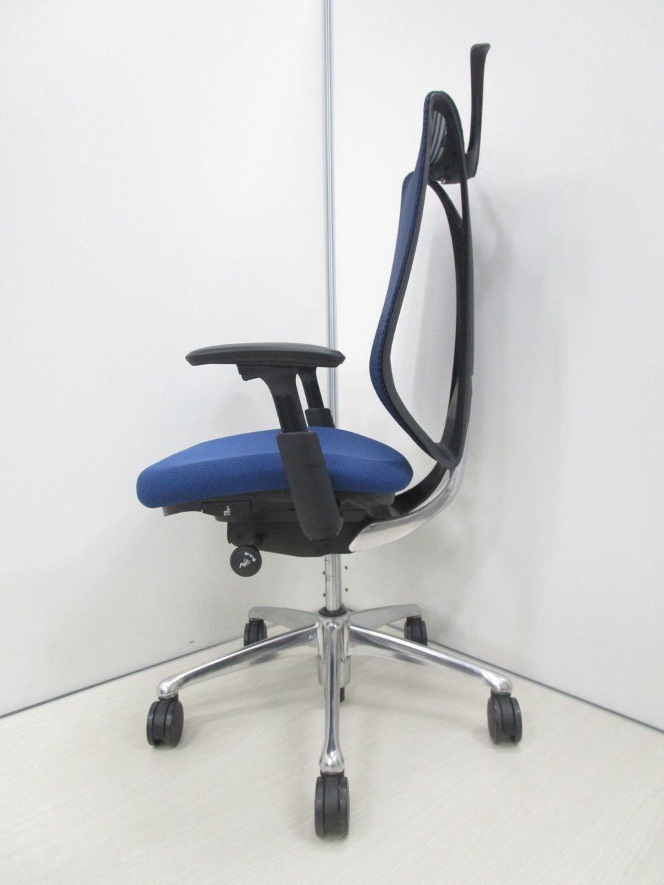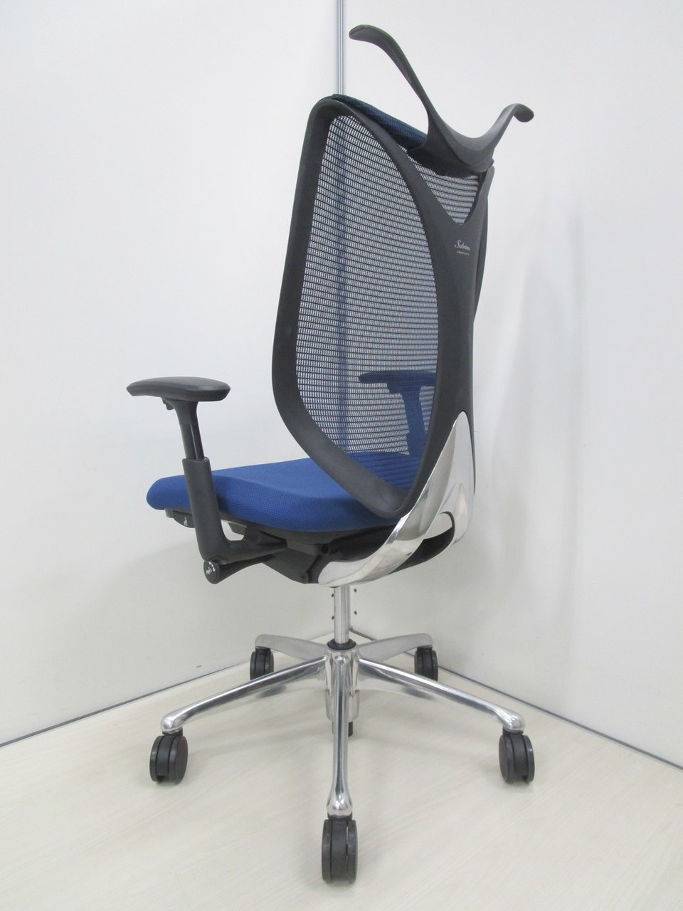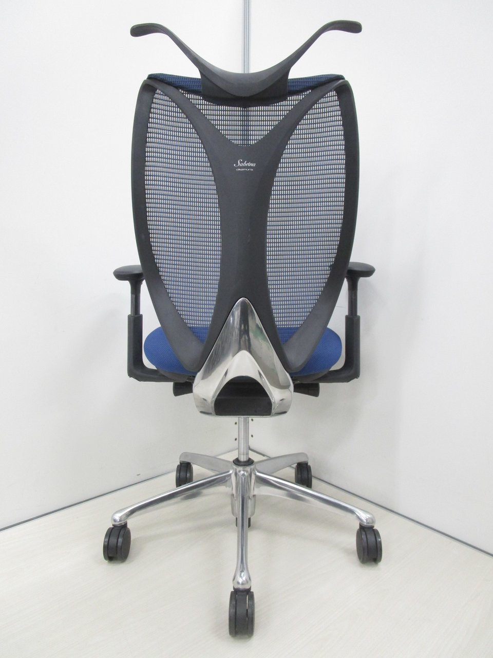 【前傾チルト付!流れるような美しいフォルムの最高級メッシュチェア!】■オカムラ(okamura)製 Sabrina(サブリナ) ハイバック 肘付き ■可動肘 ■背面メッシュ:アクアブルー 座面:ブルー ホワイトフレーム