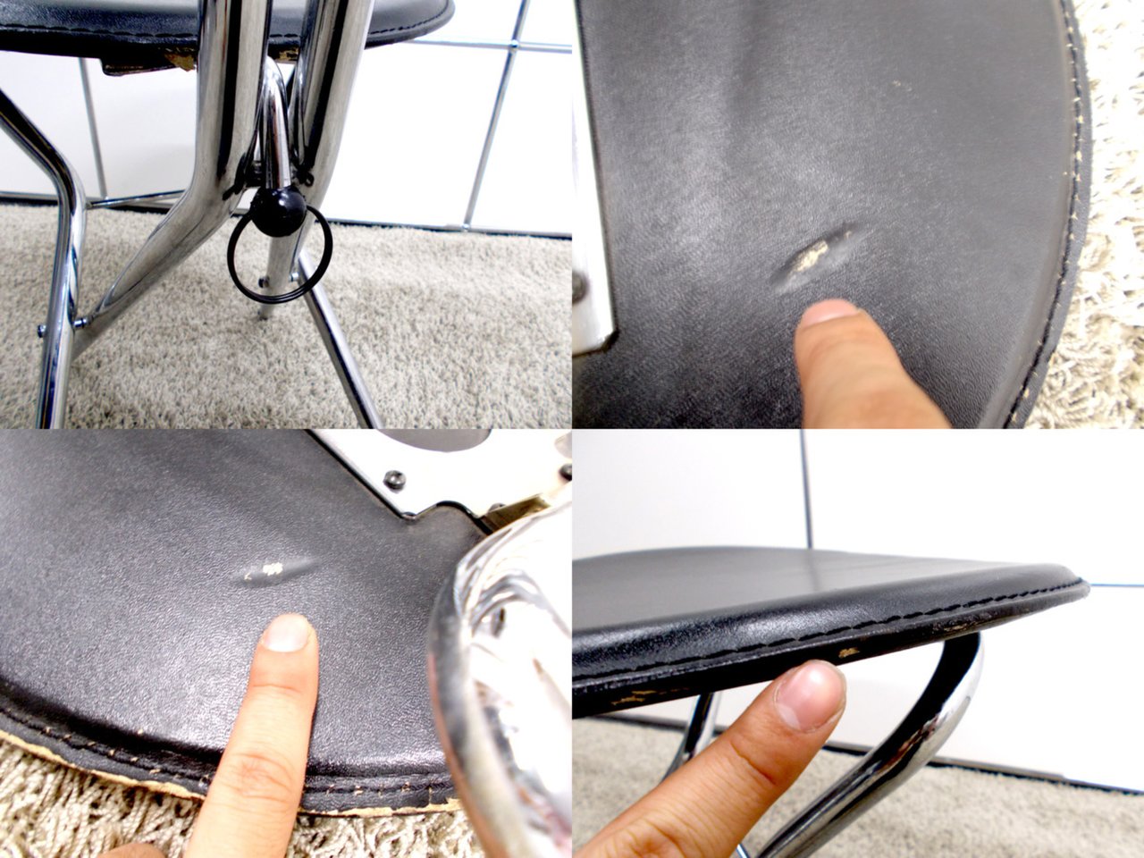 - 目立つ箇所あり傷・破れ・ほつれ・へたり・しわが多数または深い傷・破れ・ほつれ・へたり・しわが一部ある。※座面・背もたれ、シェル、脚部等にある。