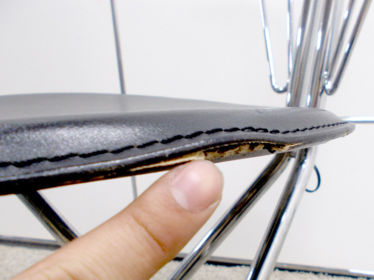 - かなり強い濃い黄ばみ・変色が商品全体にある。(例、座面・背もたれ、脚部等にある。)