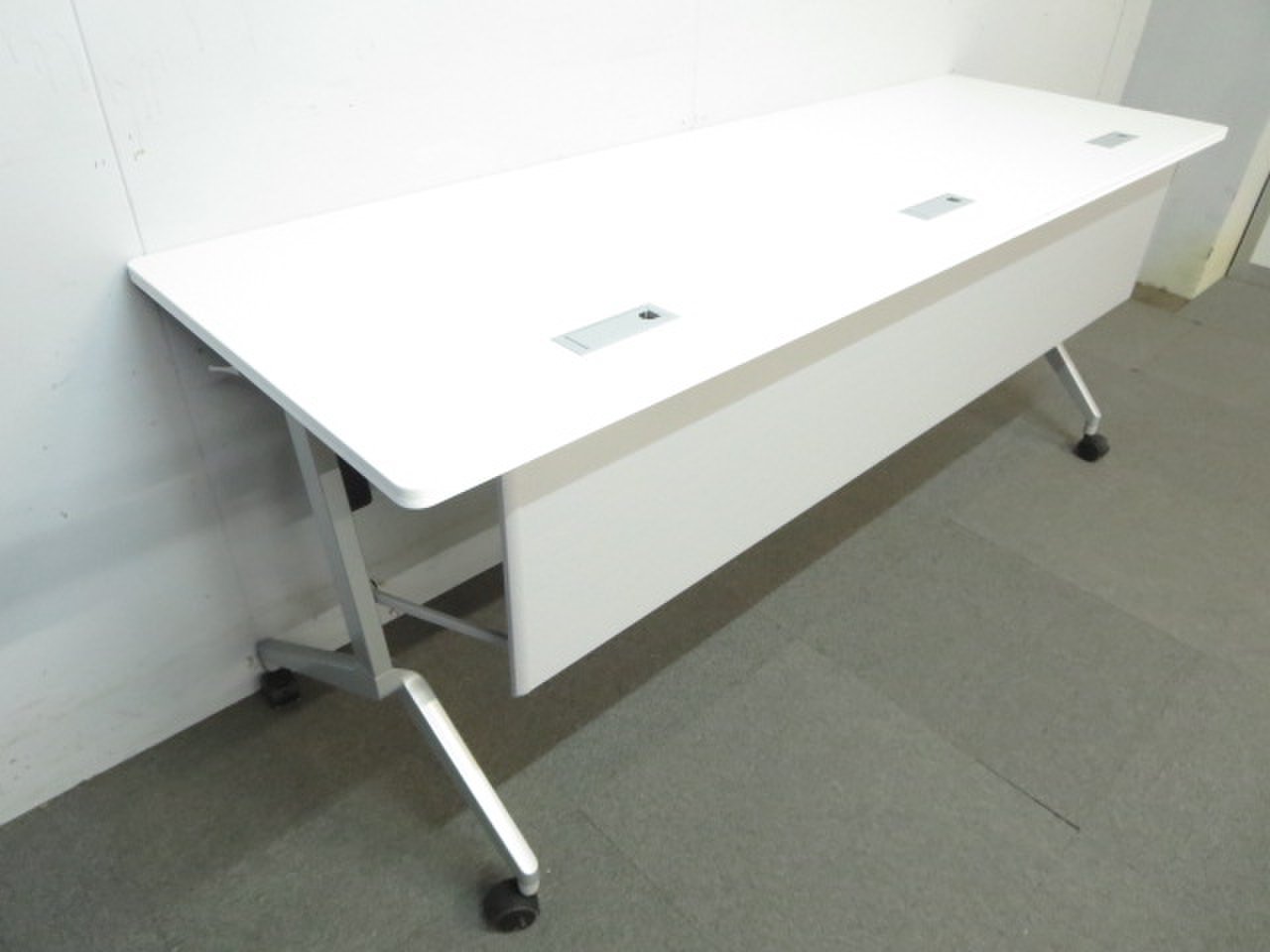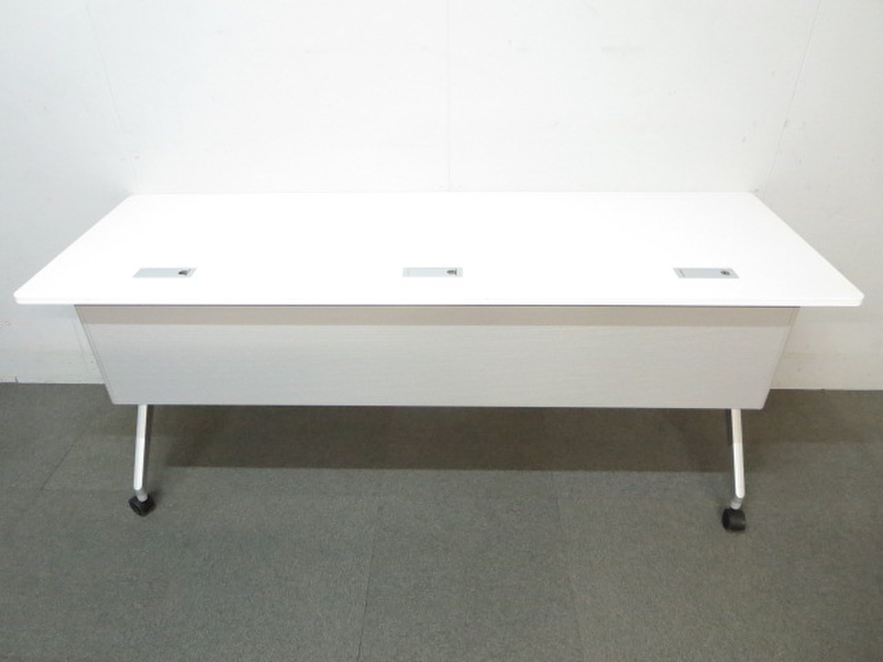 ☆W1500×D450mm!【スタイリッシュなデザイン!】■コクヨ サイドスタックテーブル ホワイト 幕板パネル付【KOKUYO Leafline】【折りたたみテーブル】