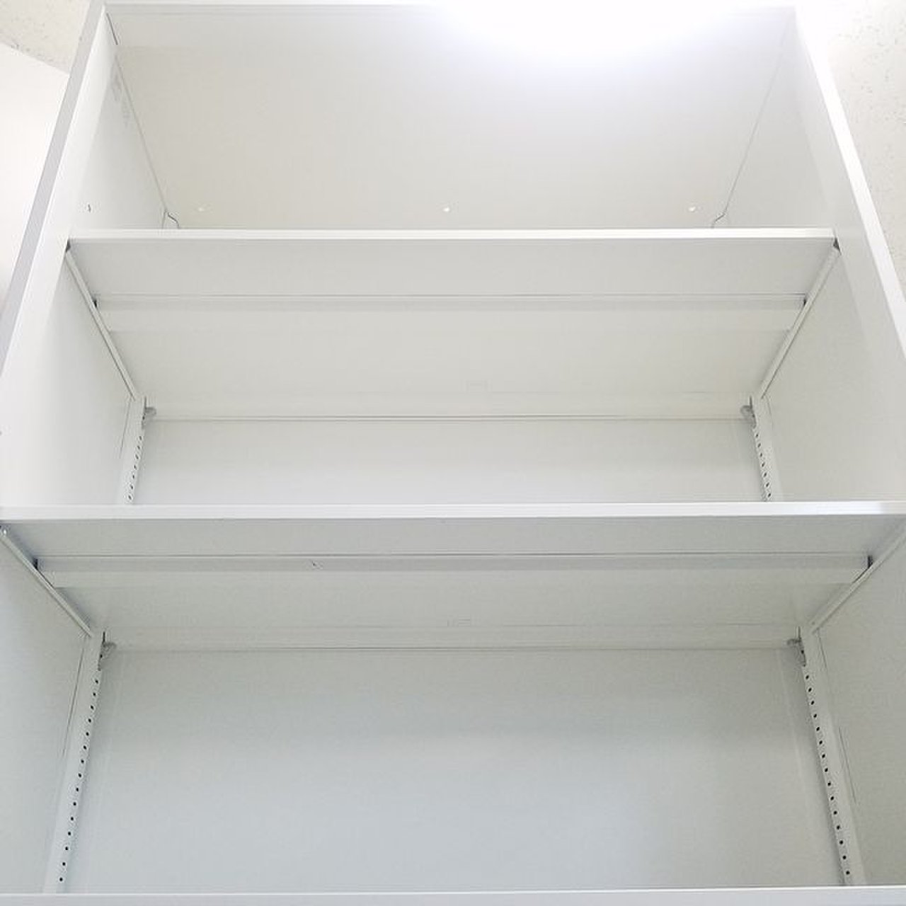 オープンキャビネットが入荷!とりあえず収納したい、書類の出し入れの多い、常に見える形で収納したい、そんなお客様におすすめ! ■オカムラ/レクトライン/ホワイト ※元は両開き書庫のため扉を外した跡がございます。
