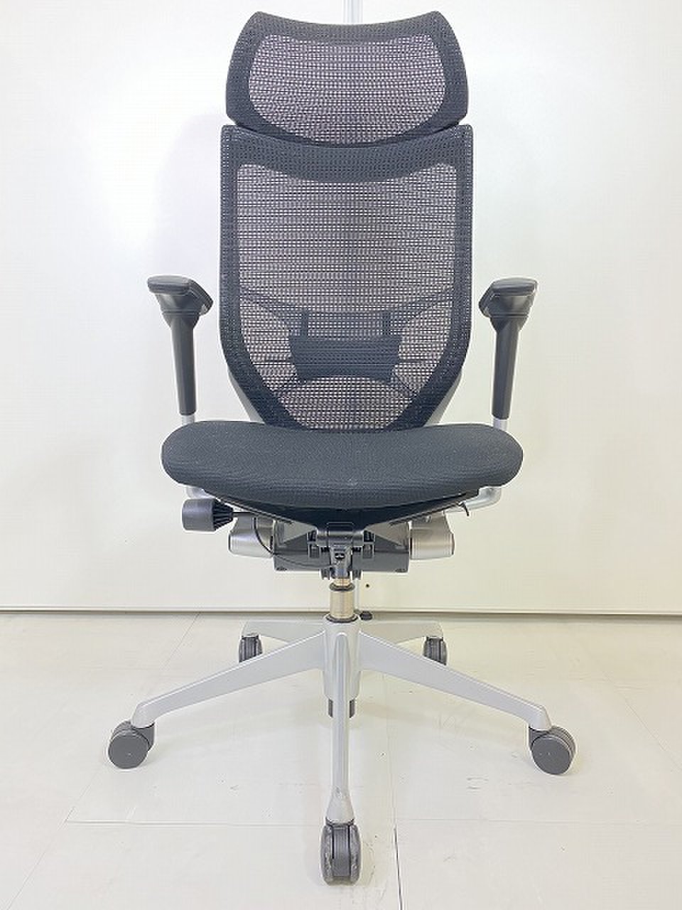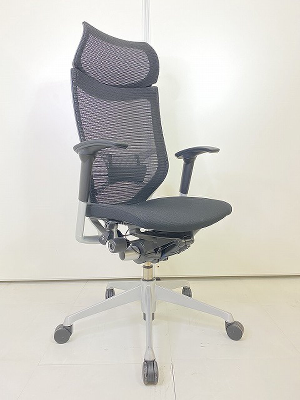 ■Okamura/オカムラ ■バロン ■ブラック(black)■ハンガー付き ■背面/メッシュ ■ポリッシュ脚 ■肘無し ■ハイバック ■オススメ/大人気/定番商品 【弊社使用欄:A01030651】
