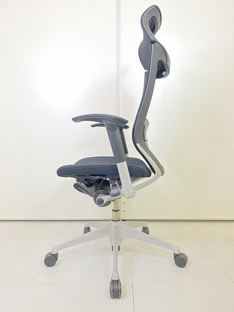 気に入っているのはリクライニング調整の自由さです。同じオカムラ社製の上位モデルや下位モデルも、角度が5段階程度の固定位置だったり、リクライニング強度も4段階だったりしますが、バロンチェアはどちらも無段階。つまり完全に好きな位置、好きな強度に調整することができます。