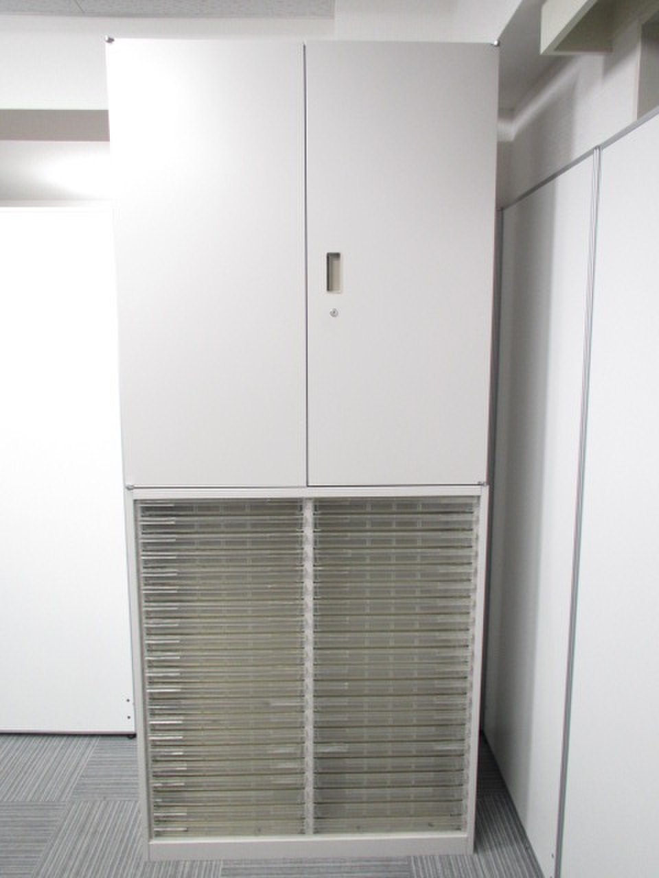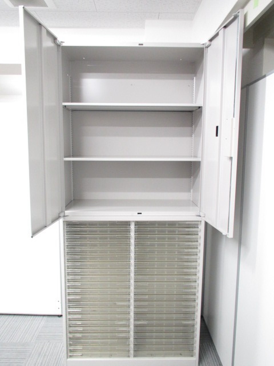 【鍵付】中古では珍しいクリスタルトレイの書庫となります!多くの書類を種類別に収納できます!- 足立・葛飾店