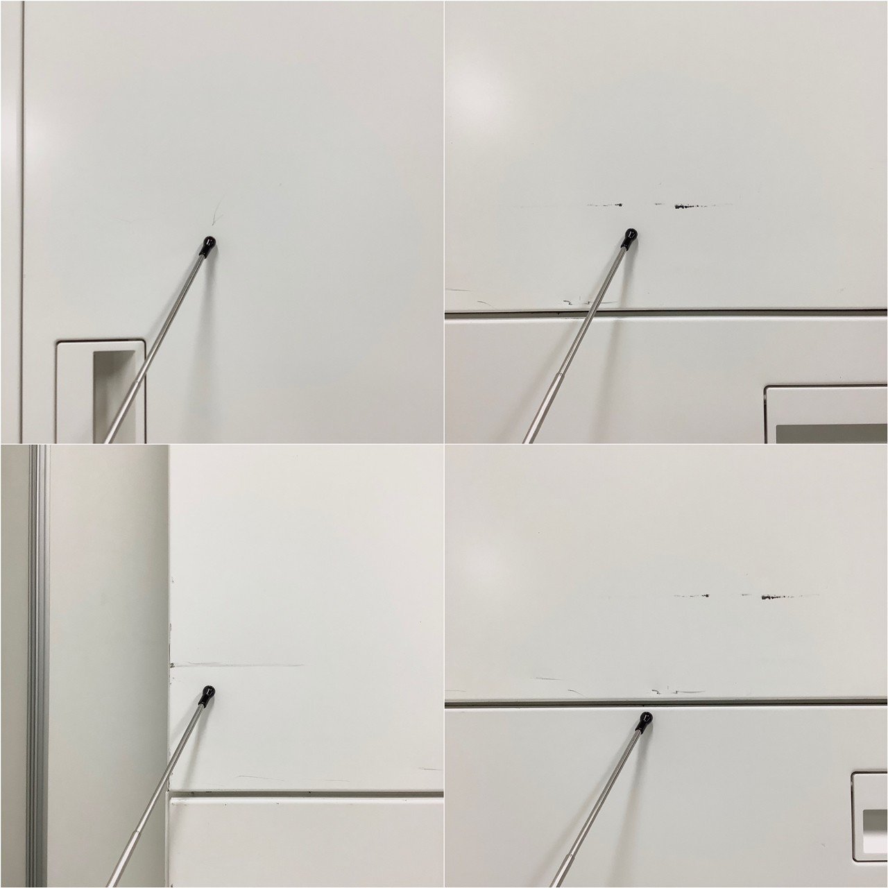 - 目立つ箇所あり傷・凹みが多数、深い傷・凹みが一部ある。(例、天板、正面、背部、サイド部分にある。)