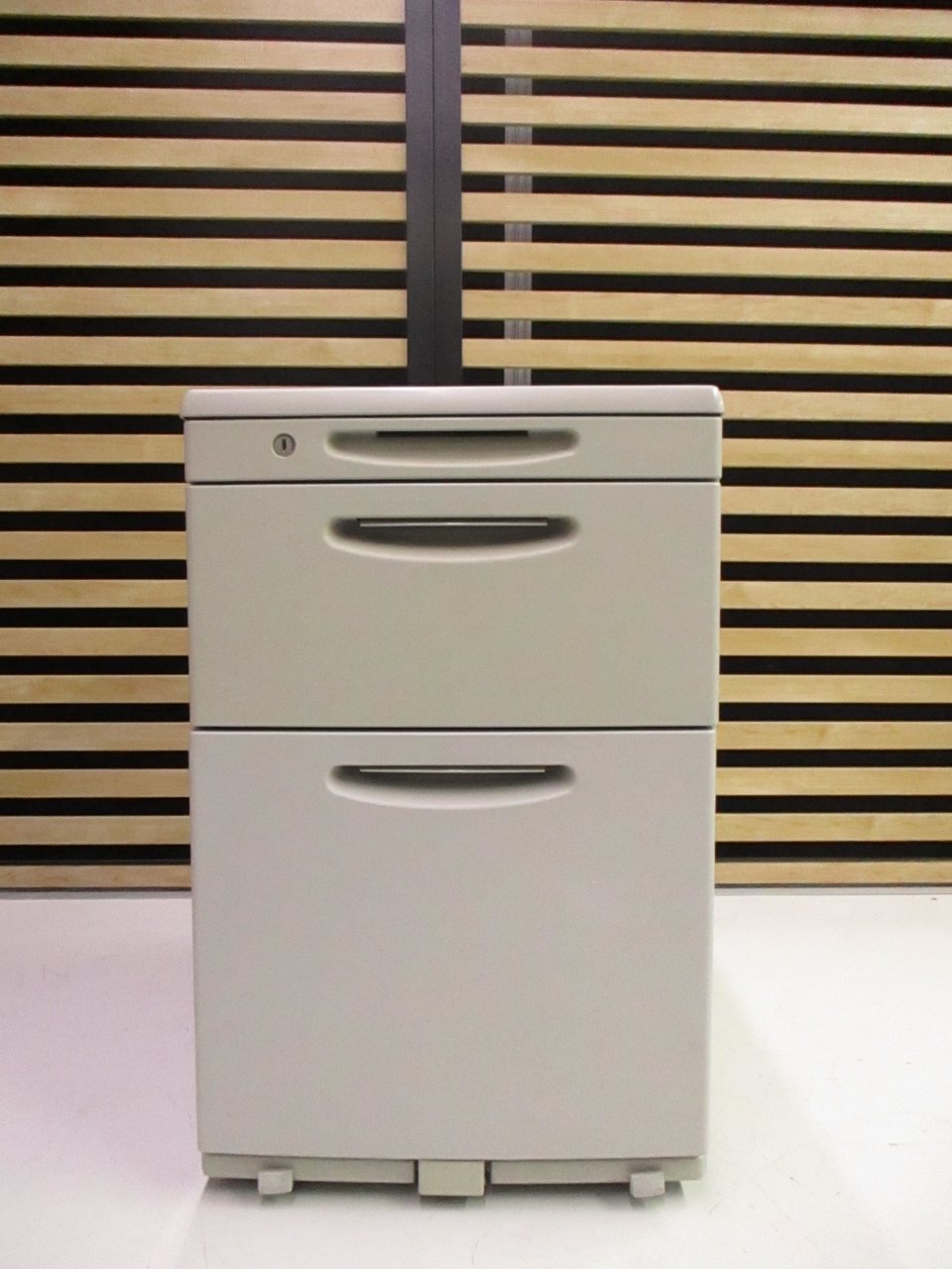 【大人気オカムラ製3段デスクワゴン!天板の把手とキャスターで移動がらくらく!デスク下に置いて収納力アップ!】■オカムラ(okamura)製 SDシリーズ 3段ワゴン デスクインワゴン H610㎜ ■ニューグレー ■シリンダー錠