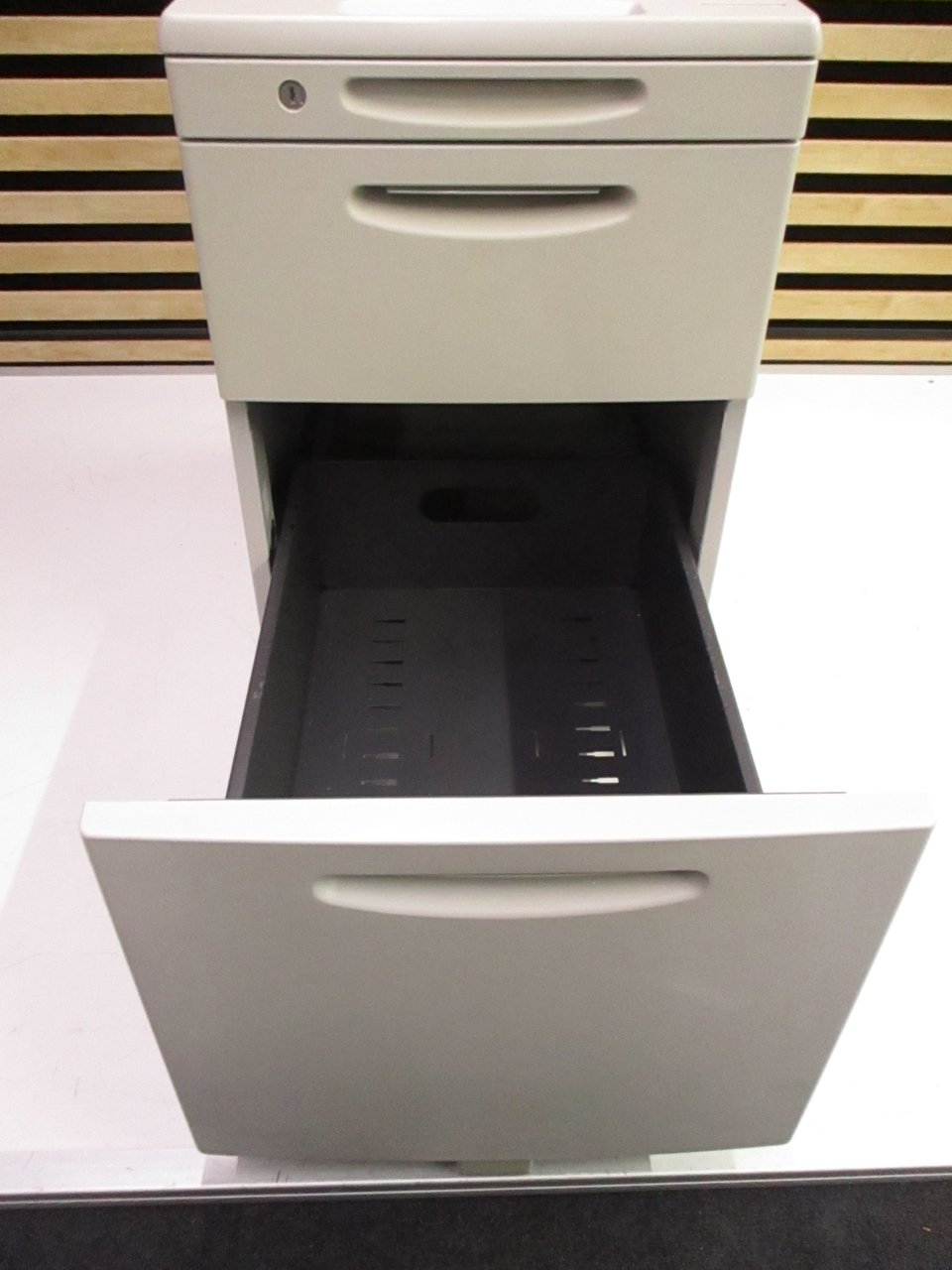 【天板の把手とキャスターで移動がらくらく!シンプルでスタンダードな3段ワゴン!】■オカムラ(okamura)製 SDシリーズ 3段ワゴン デスクインワゴン H610㎜ ■1段目引き出し浅め ■ニューグレー ■シリンダー錠【2506】弊社使用欄【A01019125】