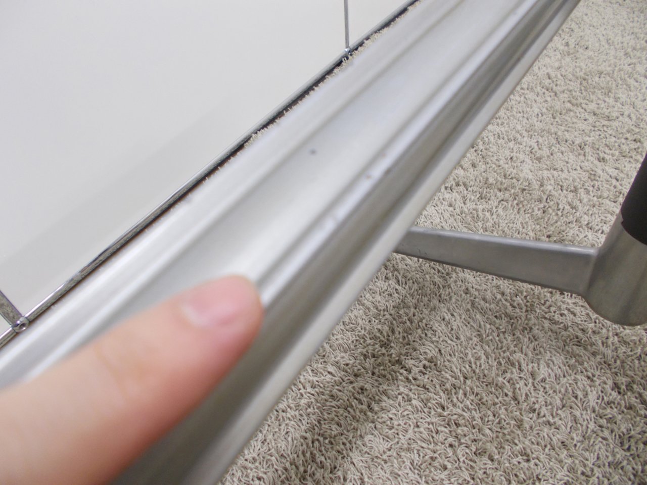 ガラス受けの緩衝材が1か所欠損しております。(写真4.5,6参照)