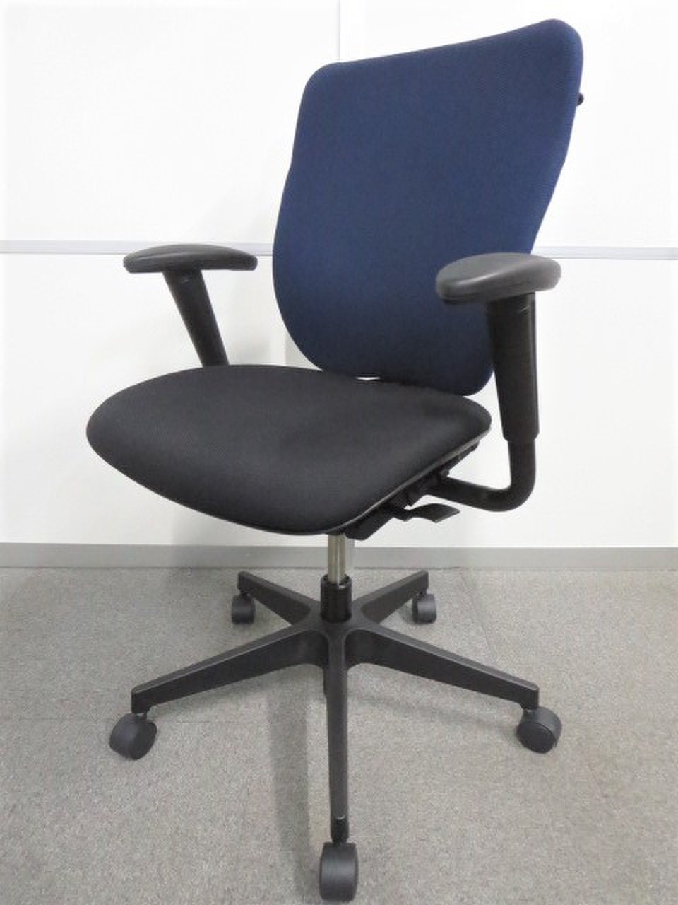 【一人ひとりにマッチする座り心地!ミドルクラスの定番チェア!】■イトーキ(ITOKI)製 プラオ(PRAO)チェア 肘付ハイバック ■ストロングブルー×ブラックシェル ■可動肘(ソフトパッド) ■ランバーサポート付き