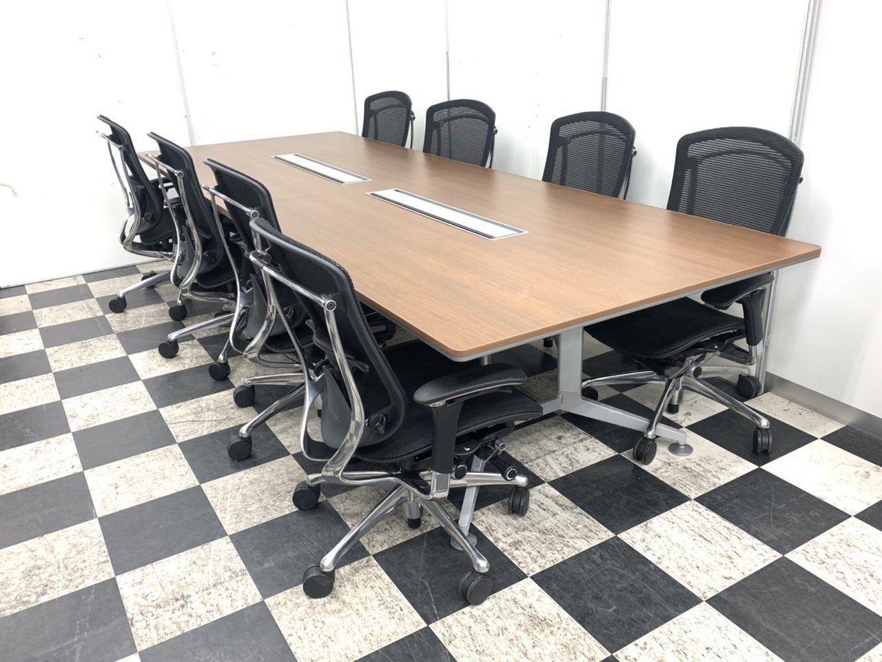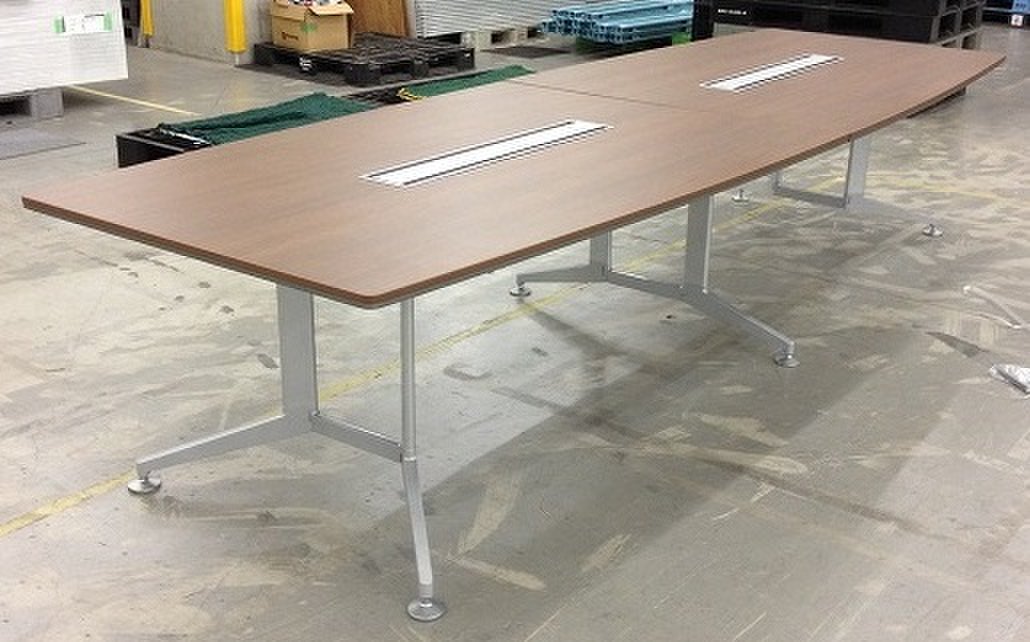 【ハイグレードなデザイン!】■コクヨ製 会議用テーブル(W3600mm)ボート型天板 配線付き ブラウン- 川崎店