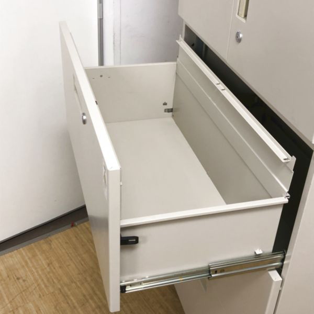 - 一部不具合ありそ引出の開閉不可、施錠不可、棚板無しといったの書庫の本来の効用を果たすための機能以外の一部が使用不可(例、扉、引出の開閉がしづらいなどがある。 )
