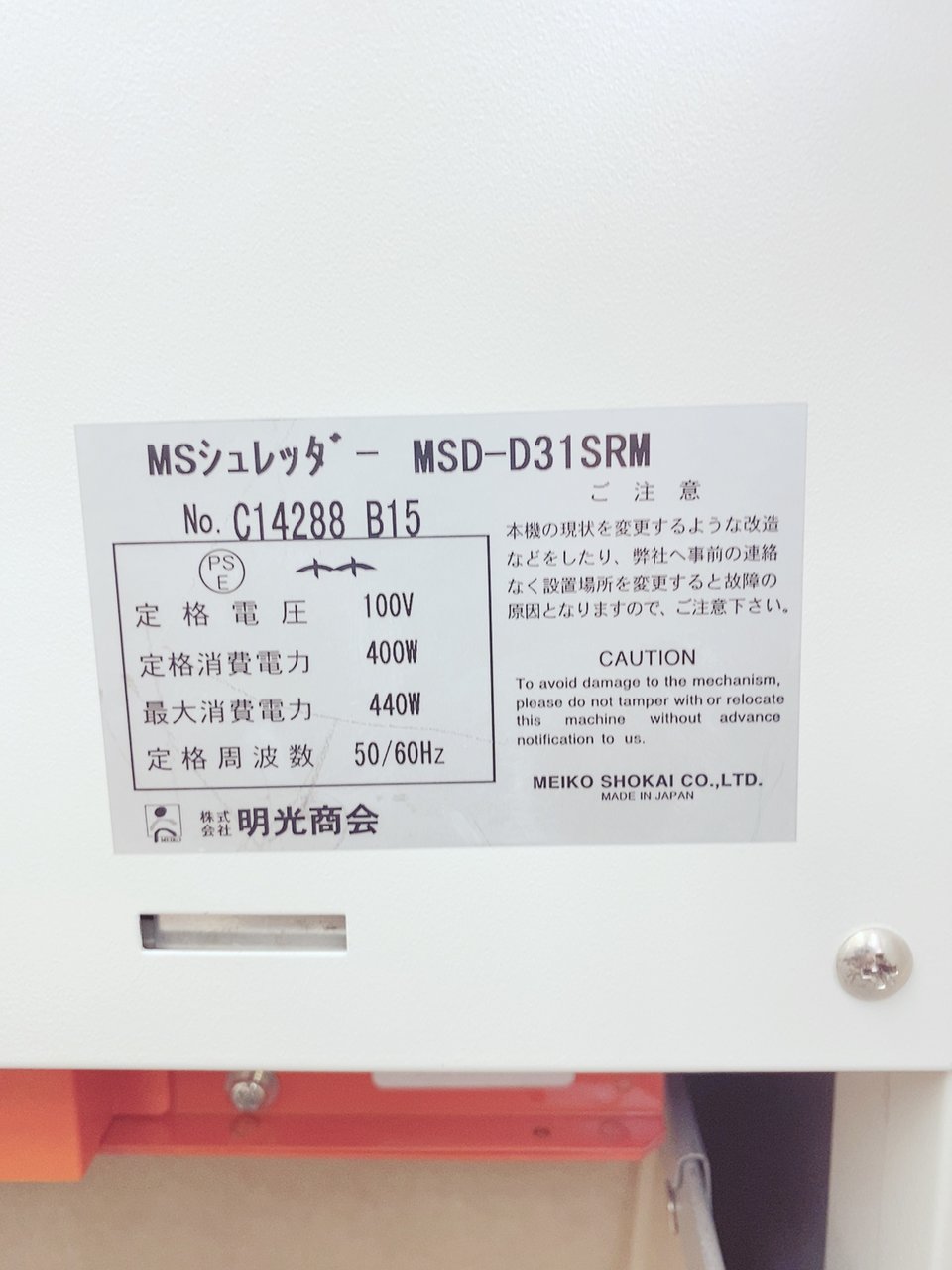 【中古】 MSDシリーズ MSD-D31SRM 明光商会 シュレッダー 294587