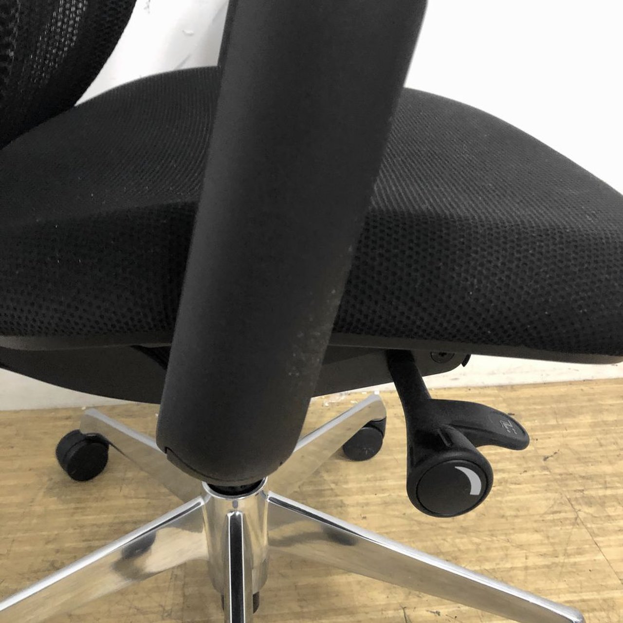 - 座面右下のダイヤル操作で、リクライニングの強弱調整が行えます。これまでのダイヤル式よりも、少ない回転数で、最弱?最強の調整が可能です。