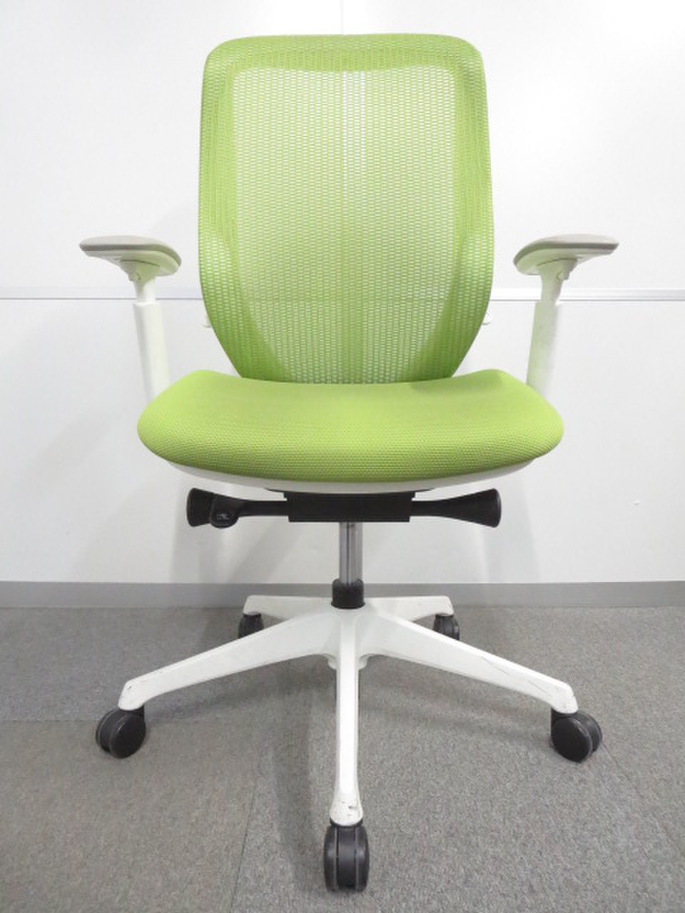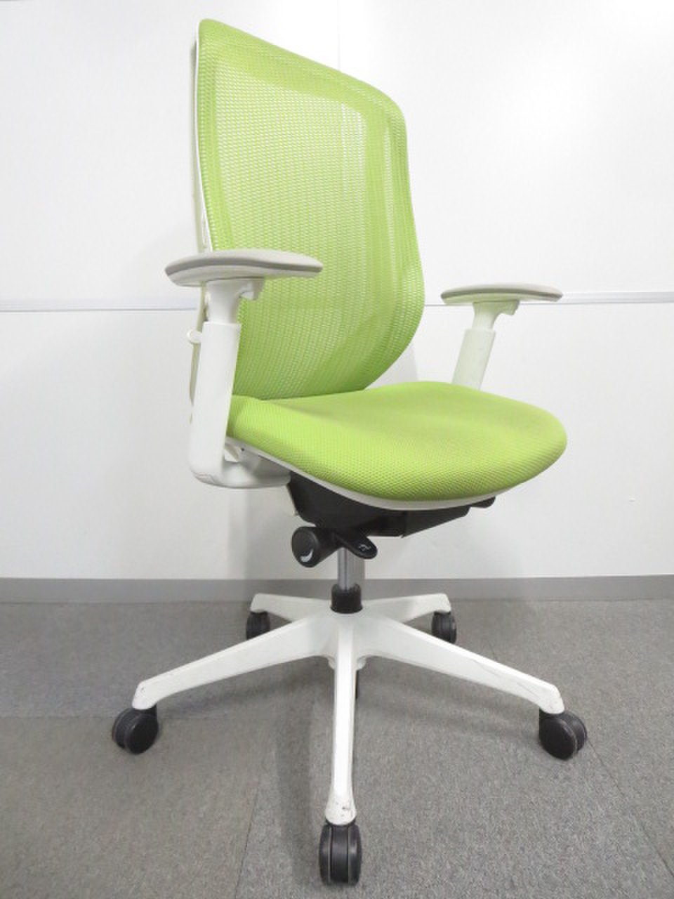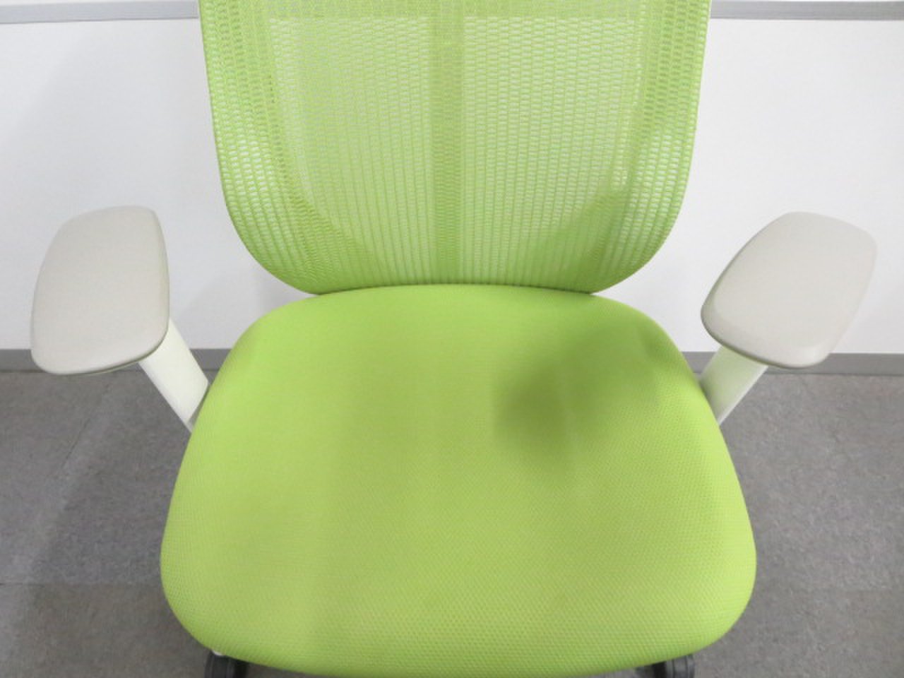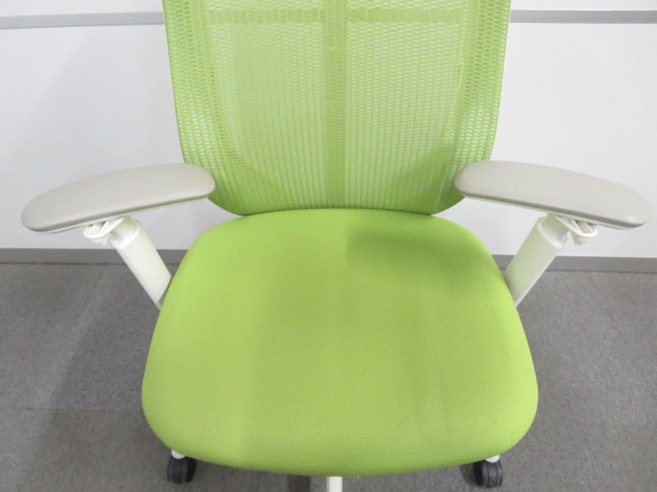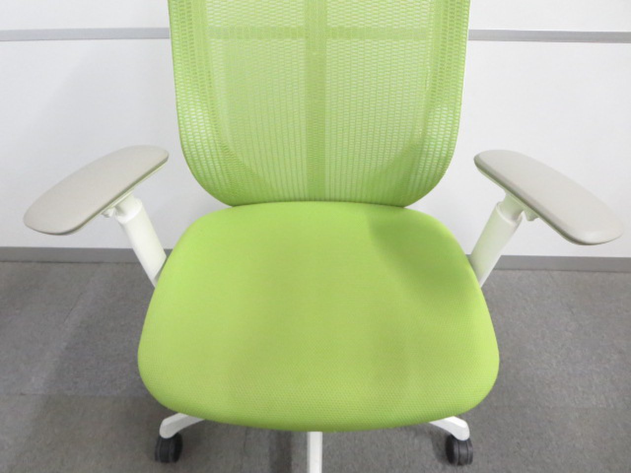 【2022年製!】前傾チルト機能付き!オカムラ製品で最も人気を集める高機能メッシュチェア! ■オカムラ/シルフィ(Sylphy)/ライムグリーン 肘付き ハイバック 背面メッシュ ■可動肘 ■ハンガー付き