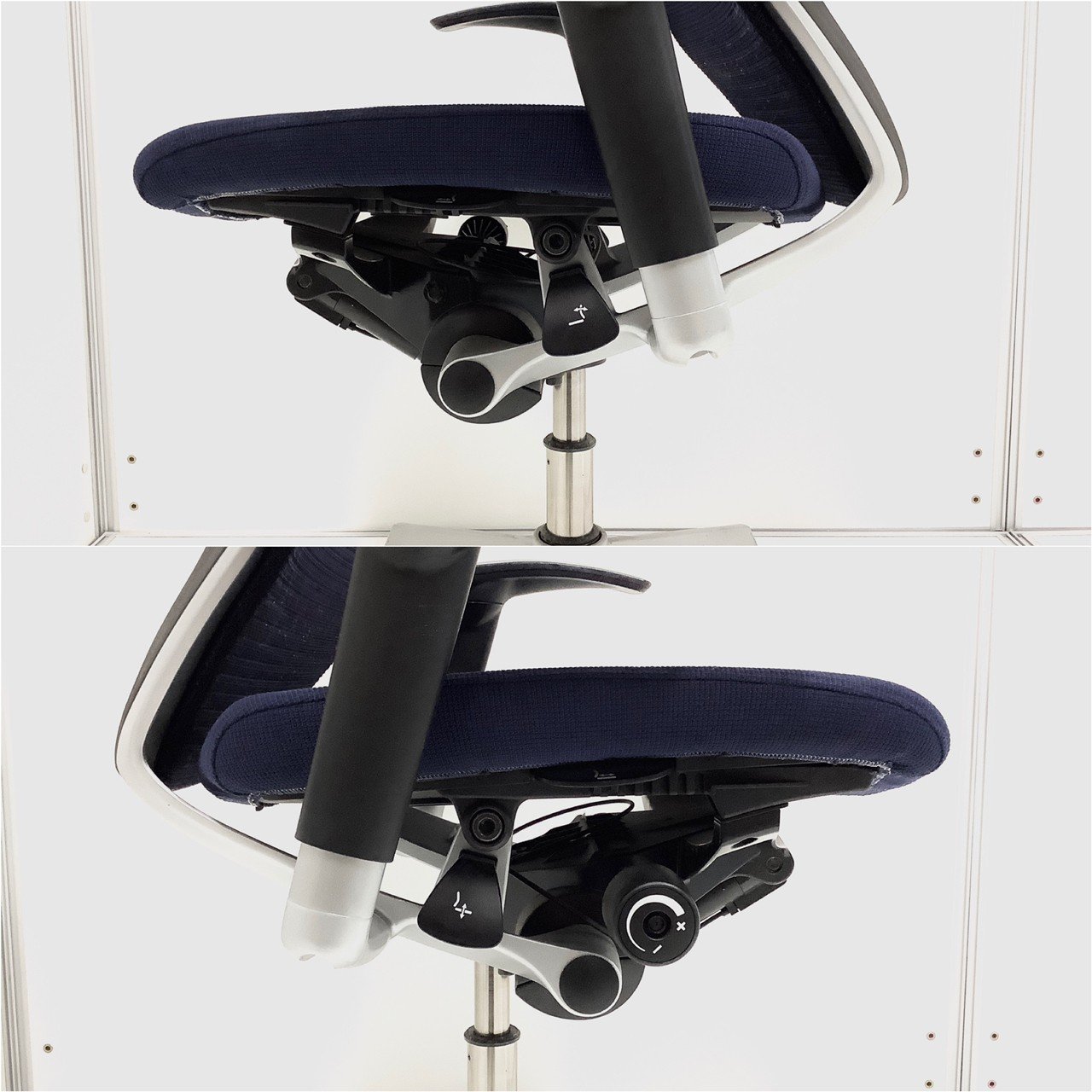 【ベストなポジションが得られる先進設計!】■オカムラ バロンチェア 肘付 ダークブルー ハンガー付 ■長時間の着座でも疲れにくいサポート感!★A01013953