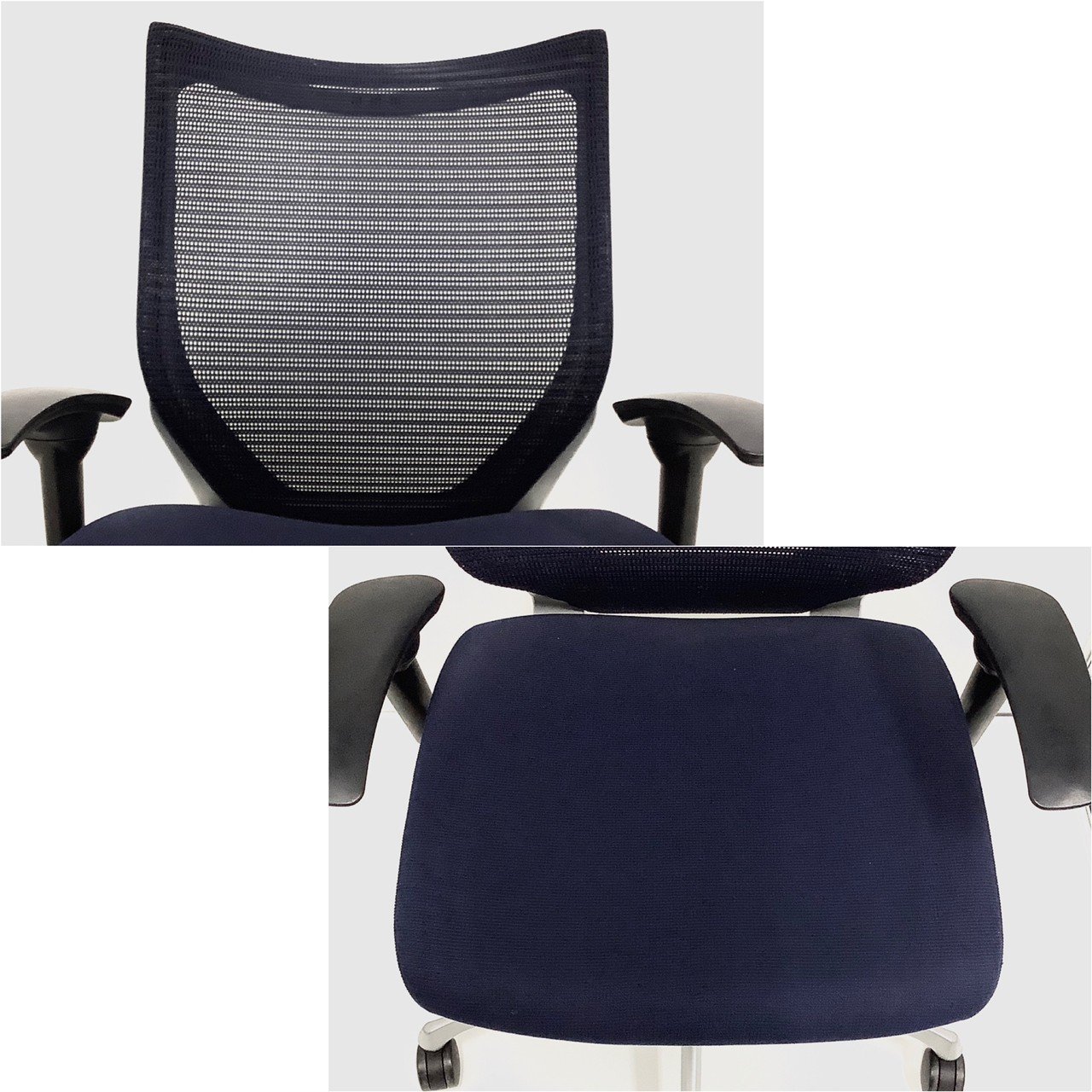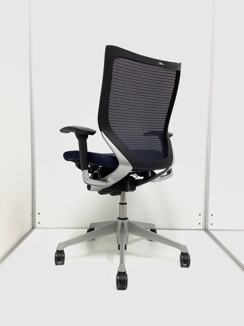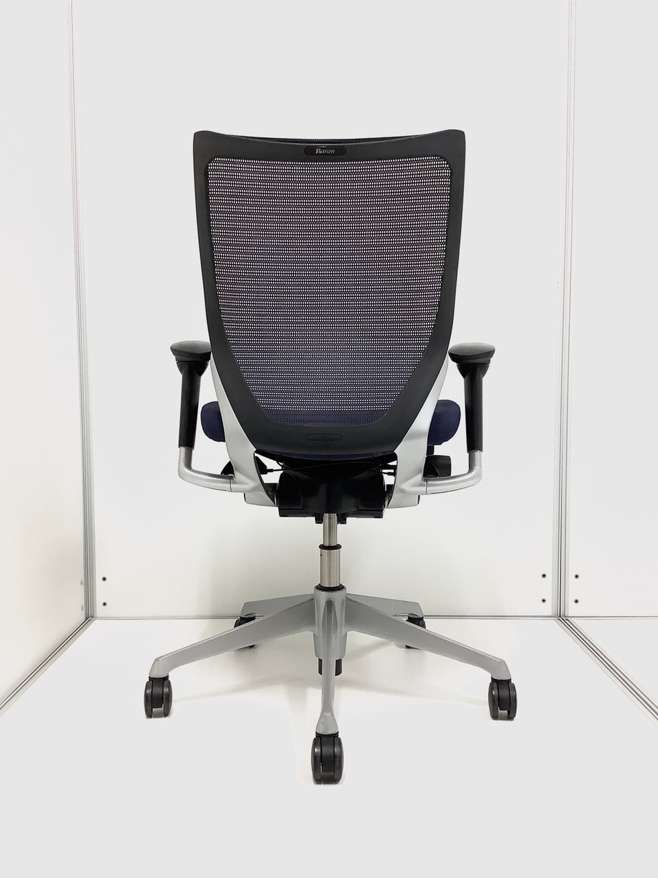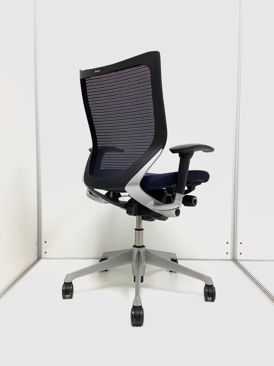 【座面が大人気!国産メッシュチェアの代表格!】■オカムラ(okamura)製 バロン(Baron)チェア ローバック 肘付き ■背面メッシュ ■固定肘 ■色:ダークブルー ■ハンガー付き