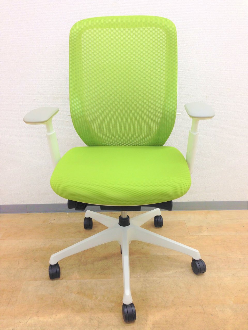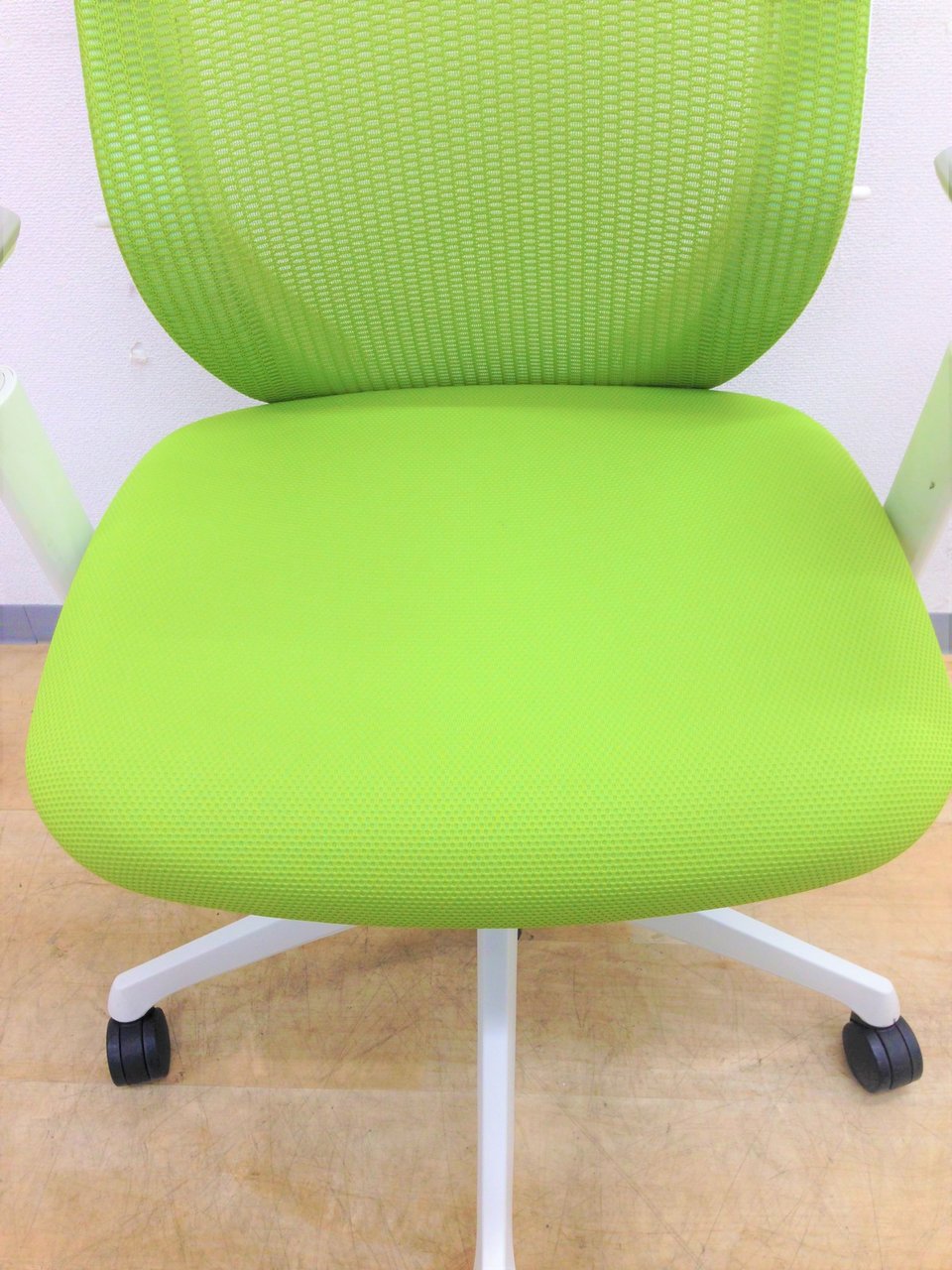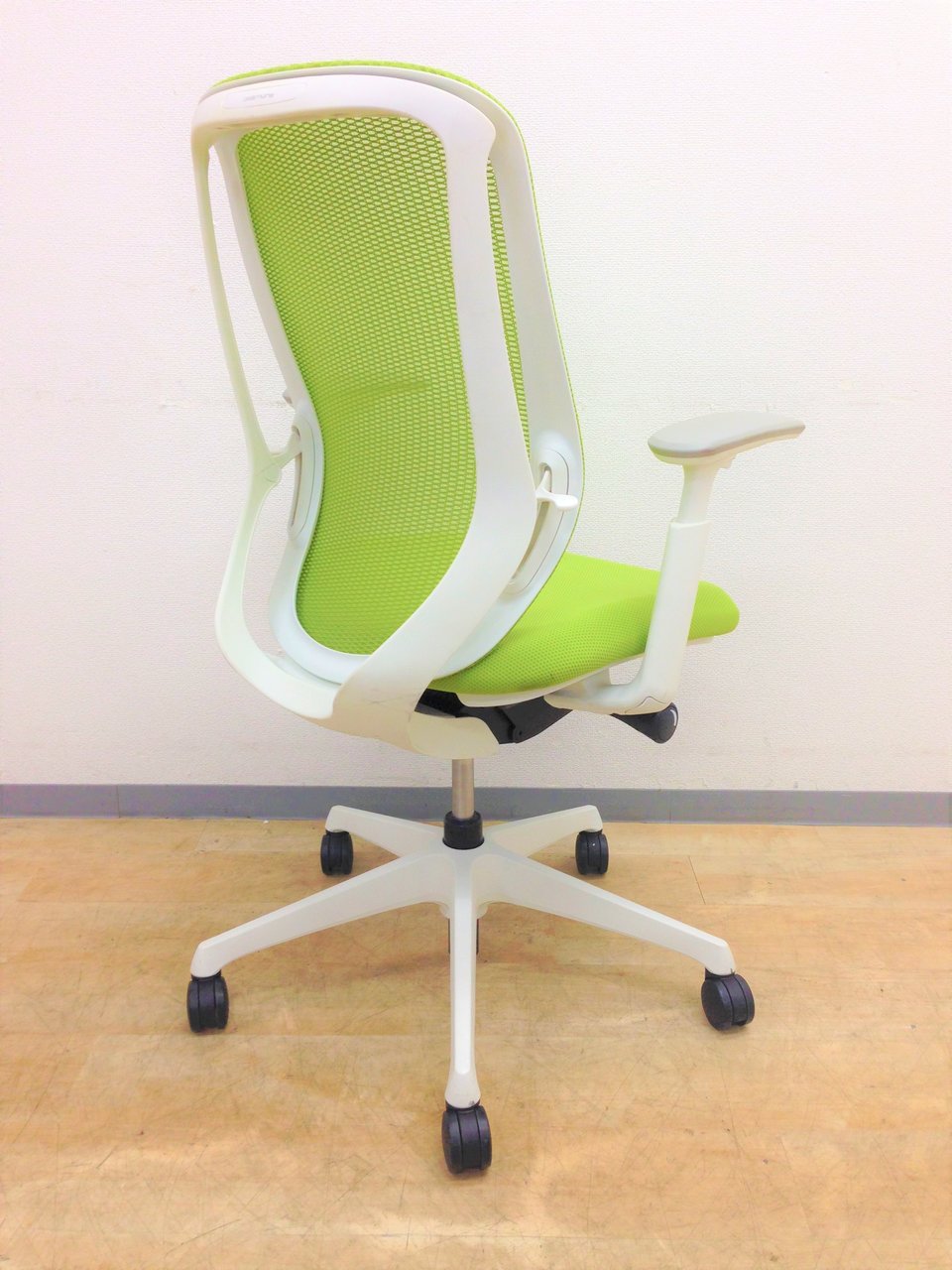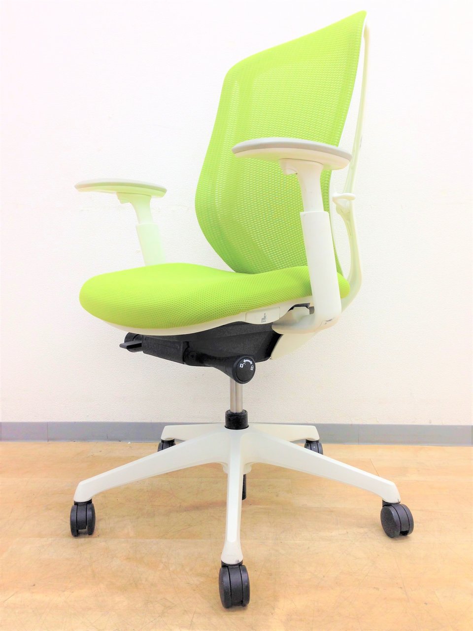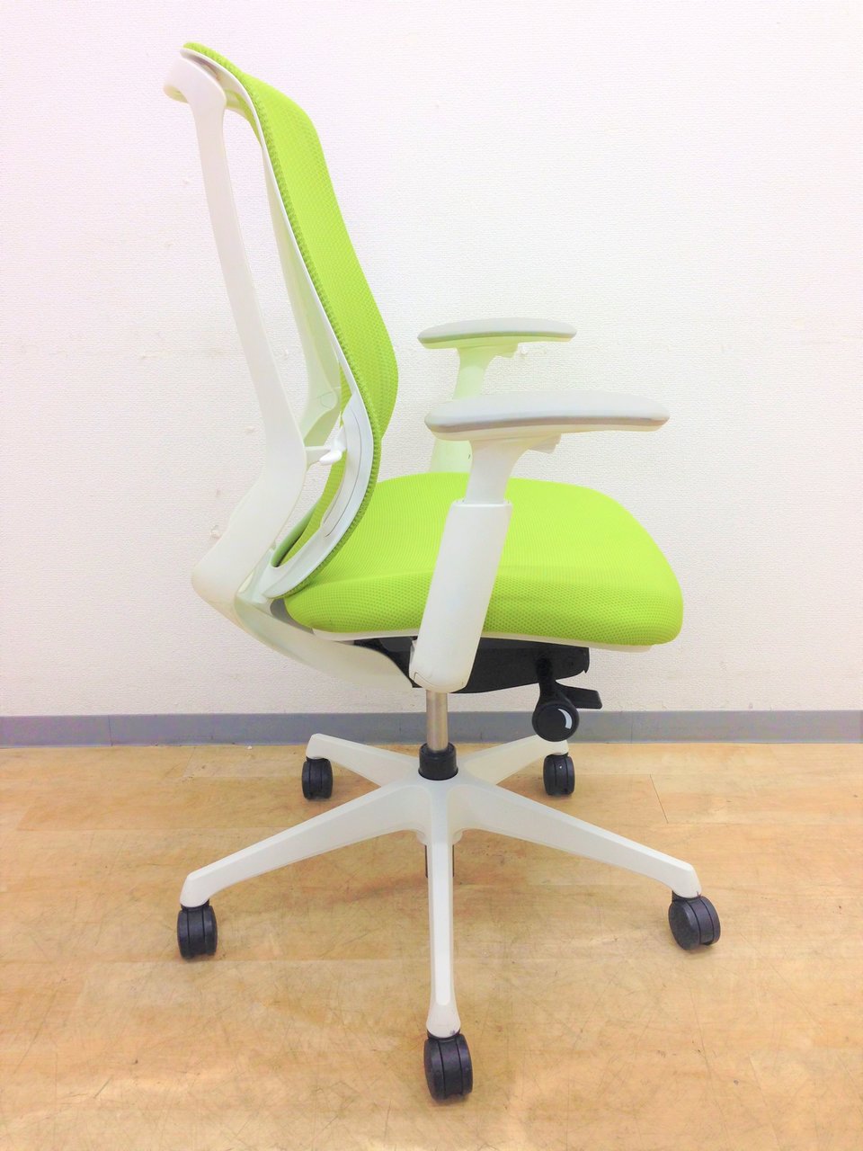 【在庫入替セール品】【人気のシルフィチェアヘッドレスト付きが1脚限定入荷!】オカムラ シルフィ ライムグリーン エクストラハイバック ホワイトフレーム デザインアーム(固定肘) 前傾チルト機能付き