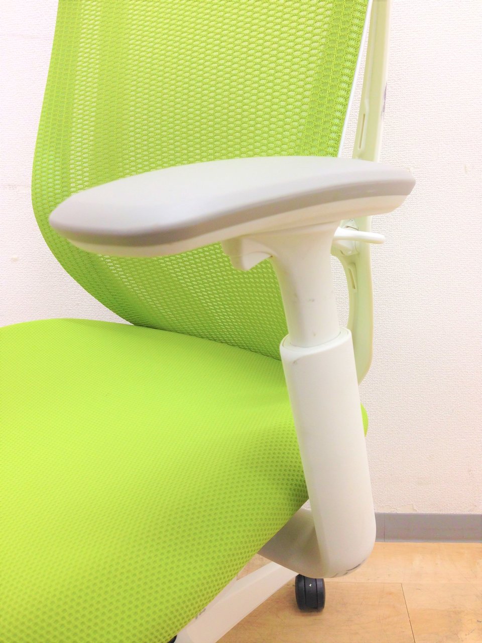 【人気のヘッドレスト付!集中作業にもオススメのワークヴェール付!】■オカムラ シルフィーチェア 可動肘付 ライムグリーン エクストラハイバック ■背のカーブを変えられる!新感覚のオフィスシーティング!【Okamrua Sylphy】★