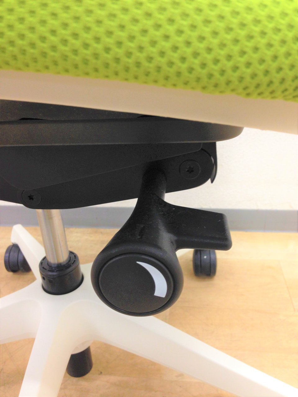 - 座面右下のダイヤル操作で、リクライニングの強弱調整が行えます。これまでのダイヤル式よりも、少ない回転数で、最弱?最強の調整が可能です。