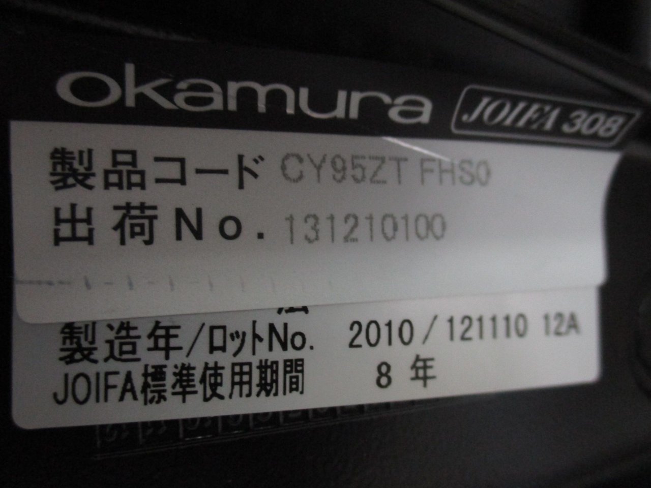 【中古】 ゼファー(メッシュ) CY95ZT-FHSO オカムラ/okamura 肘付ハイバックチェア 294919