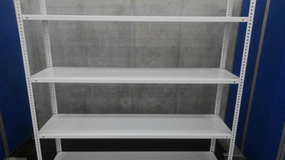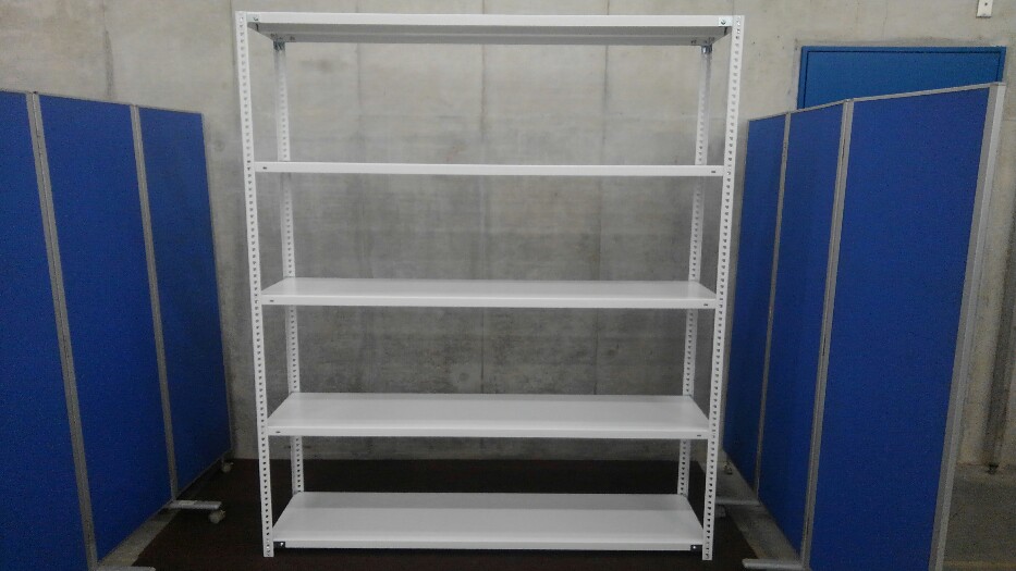激落ちくんのようなホワイトの中古ラック(W1815)が5台入荷しました! 注)呼称W1800/D450 実寸W1815/D465 天地5段 耐荷重:段/100kg 上下六角ボルト式 ※マテハン本舗の中古商品は、千葉県柏市に在庫がございます。- マテハン本舗