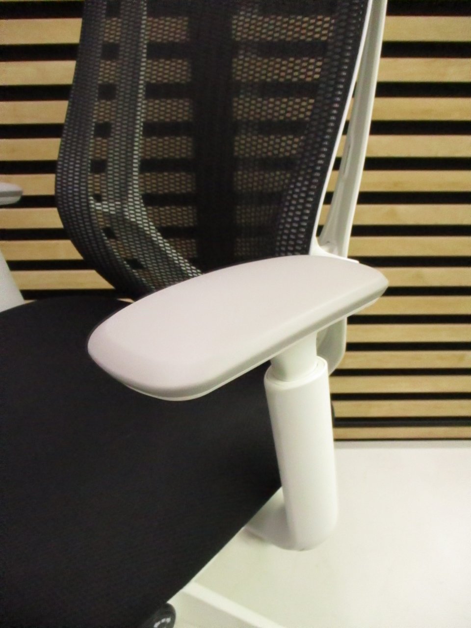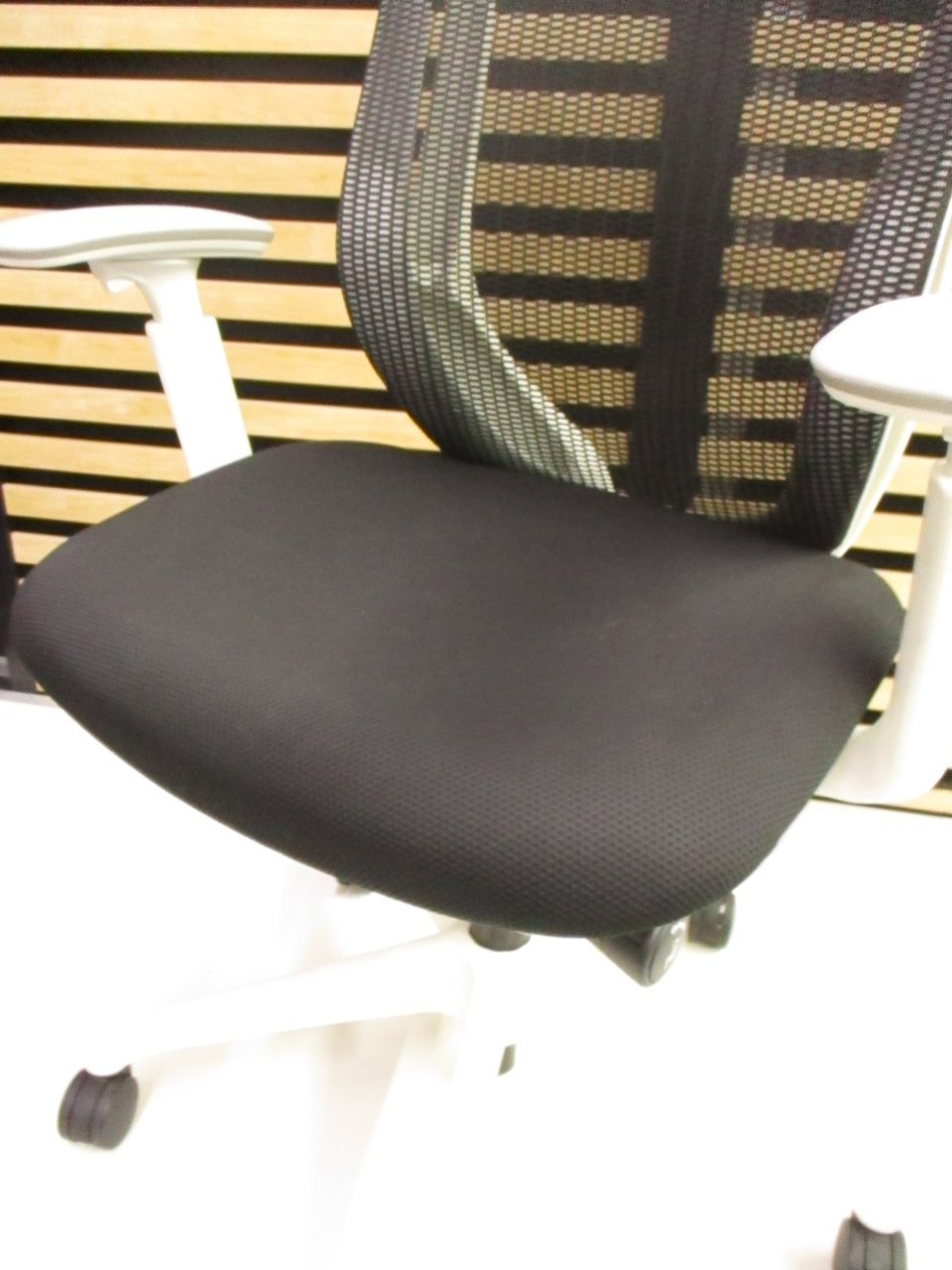 【限定1脚】【三次元曲面が身体にフィット!前傾チルト機能付き大人気メッシュチェア!】■オカムラ(okamura)製 シルフィーチェア(Sylphy) 肘付きハイバック ■背面メッシュ ■可動肘 ■ブラック×ブラックシェル ■ランバーサポート付き