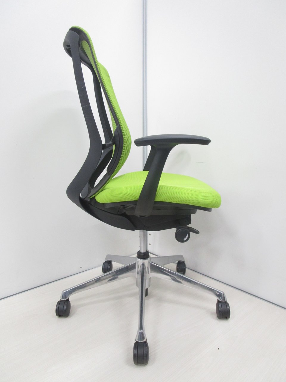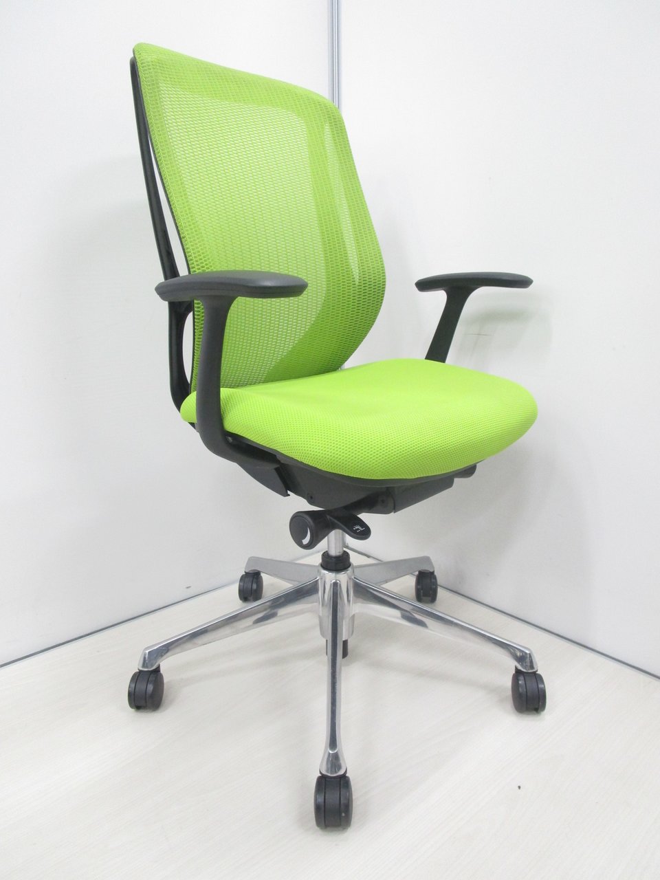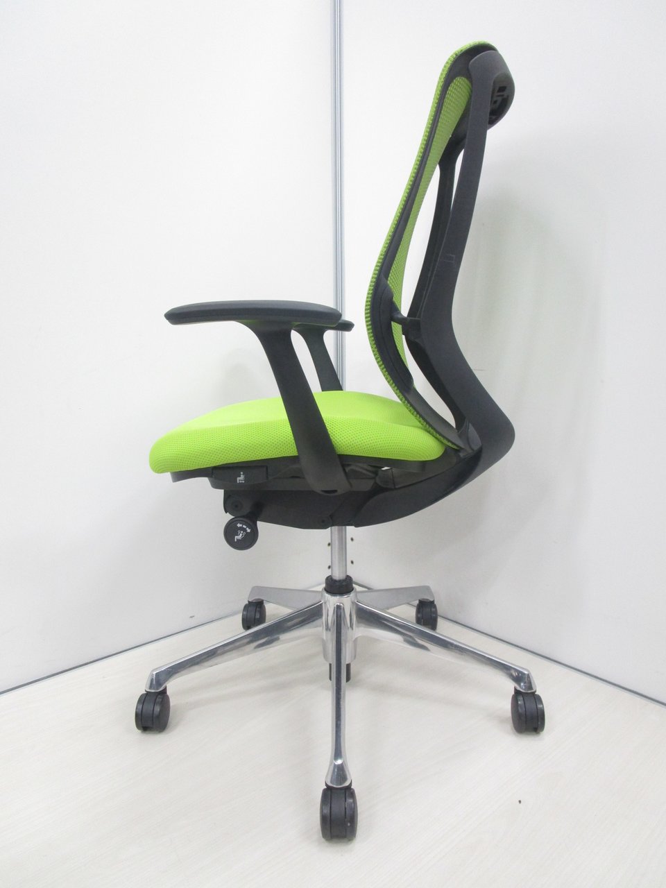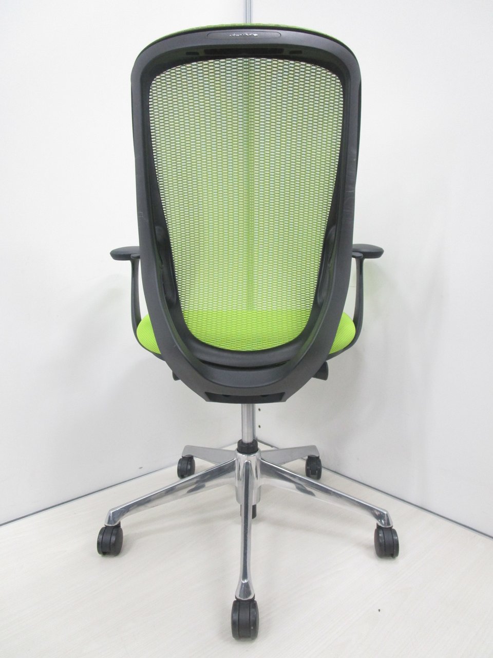 【人気のワークヴェール付!集中作業にもオススメ!】■オカムラ シルフィーチェア 可動肘付 ライムグリーン ヘッドレスト付 エクストラハイバック ■背のカーブを変えられる!新感覚のオフィスシーティング!【Okamrua Sylphy】★【在庫入替セール品!】