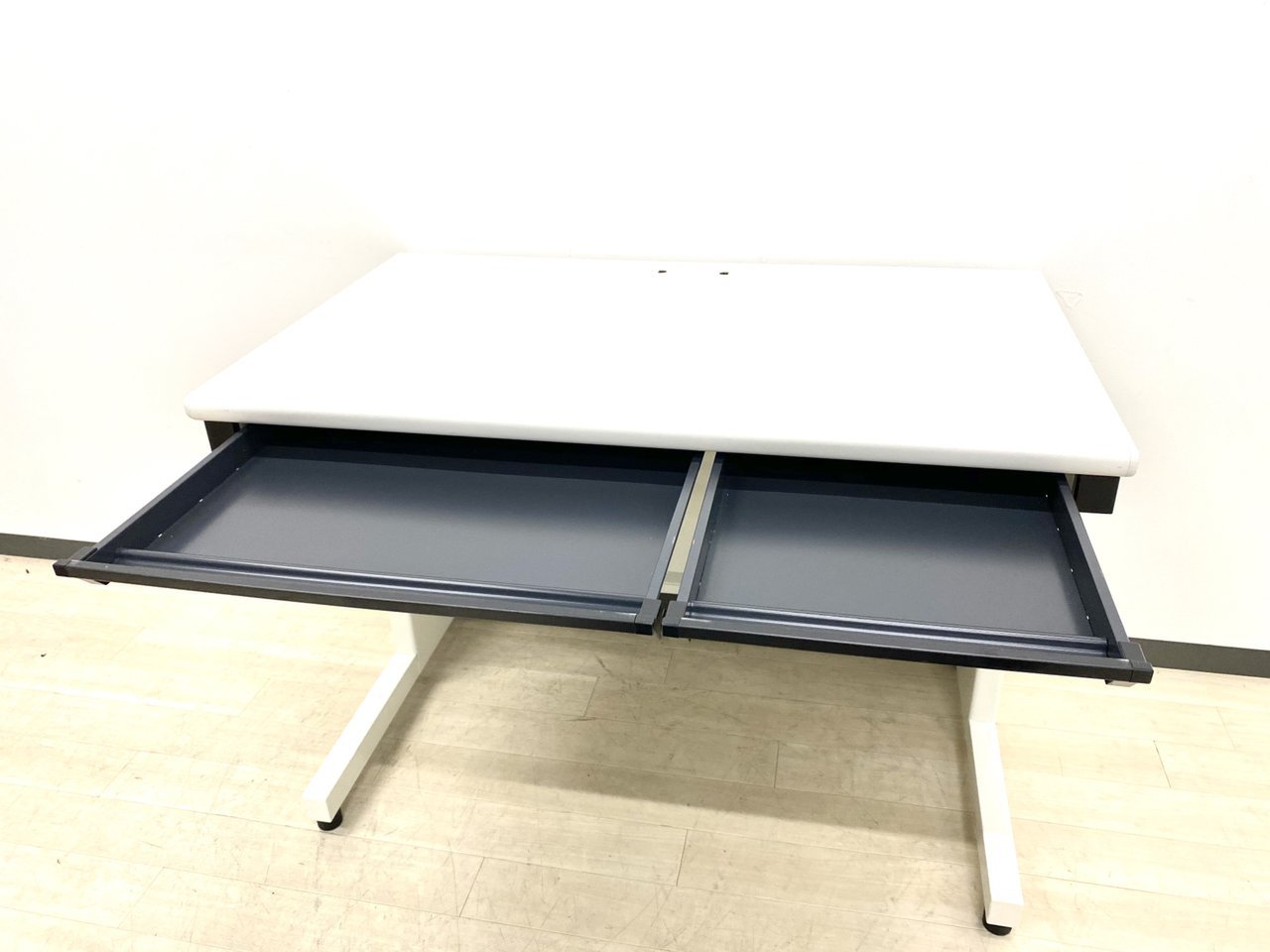 通常のデスクと同じく配線ダクトもあり、引き出し付!