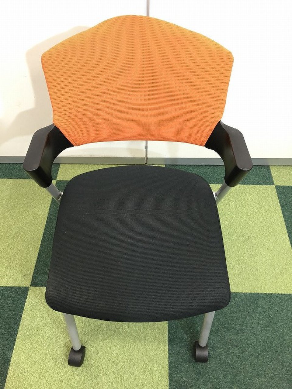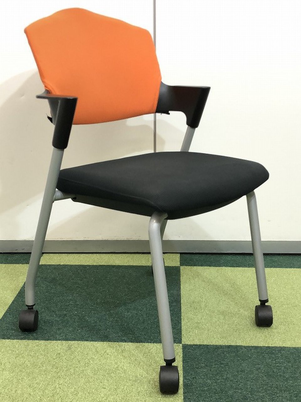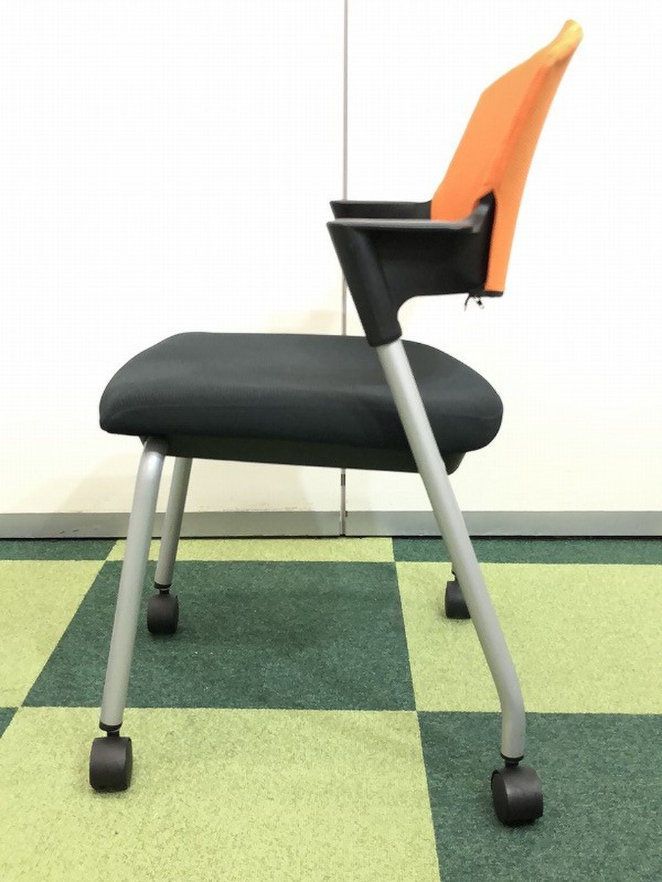 【シンプルスマートなスタッキングチェア!】■コクヨ(KOKUYO) プロッティ(Protty)チェア スタッキングチェア ミーティングチェア ■肘付き キャスター付き ■オレンジ【2505】弊社使用欄【A01018053】