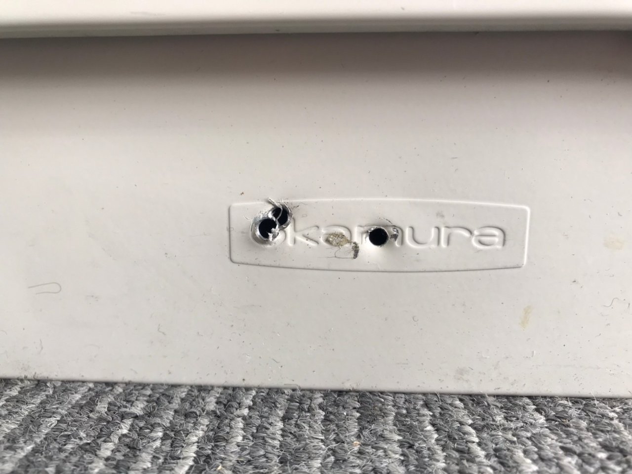 - かなり強い黄ばみ・変色が商品全体にある。(例、天板、正面、背部、サイド部分にある。)