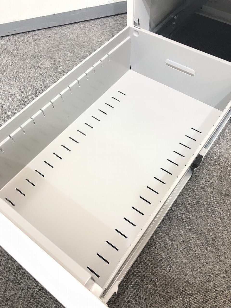- 一部不具合ありその脇机・ワゴンの本来の効用を果たすための機能以外の一部が使用不可な状態。(例、引出が開閉しづらい、 キャスターロック機能使用不可、ラッチ不良 等がある。)