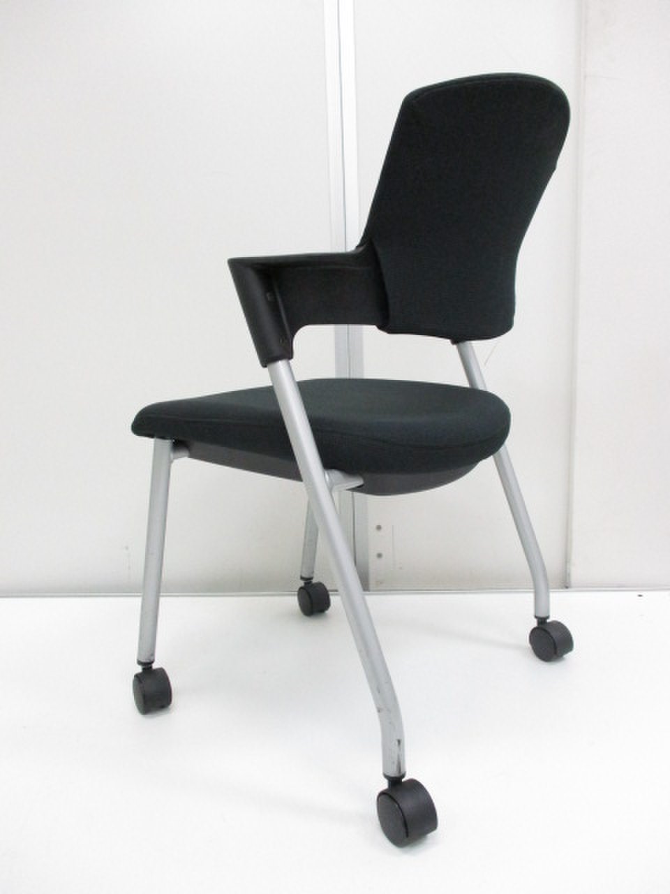 【6/16・8脚入荷予定!】【シンプルスマートなスタッキングチェア!分厚いクッションで長時間でも快適な座り心地!】■コクヨ製 プロッティ スタッキングチェア 肘付ミーティングチェア ■固定肘 ■キャスター付 ■ブラック ■背面樹脂 オフィスバスターズ梅田本店