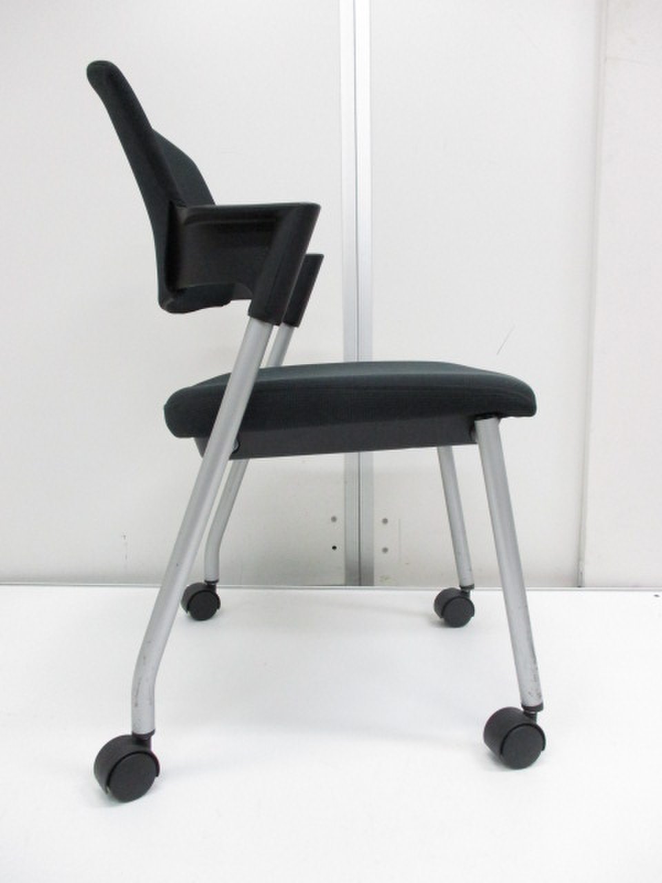 【シンプルスマートなスタッキングチェア!分厚いクッションで長時間でも快適な座り心地!】■コクヨ(KOKUYO)製 プロッティシリーズ スタッキングチェア 肘付ミーティングチェア ■固定肘 ■キャスター付 ■ブラック ■背面樹脂 【弊社使用欄:A01006552】