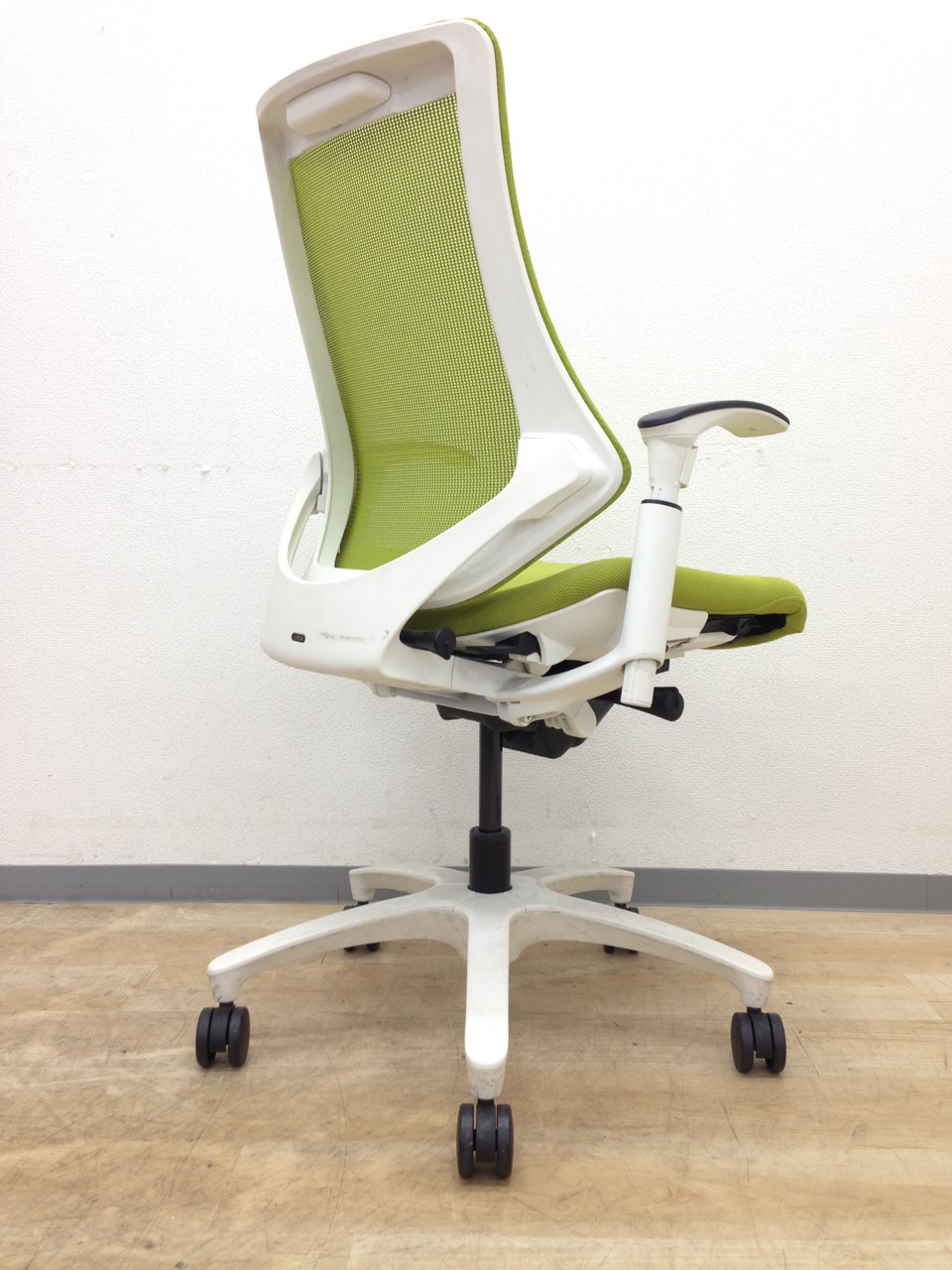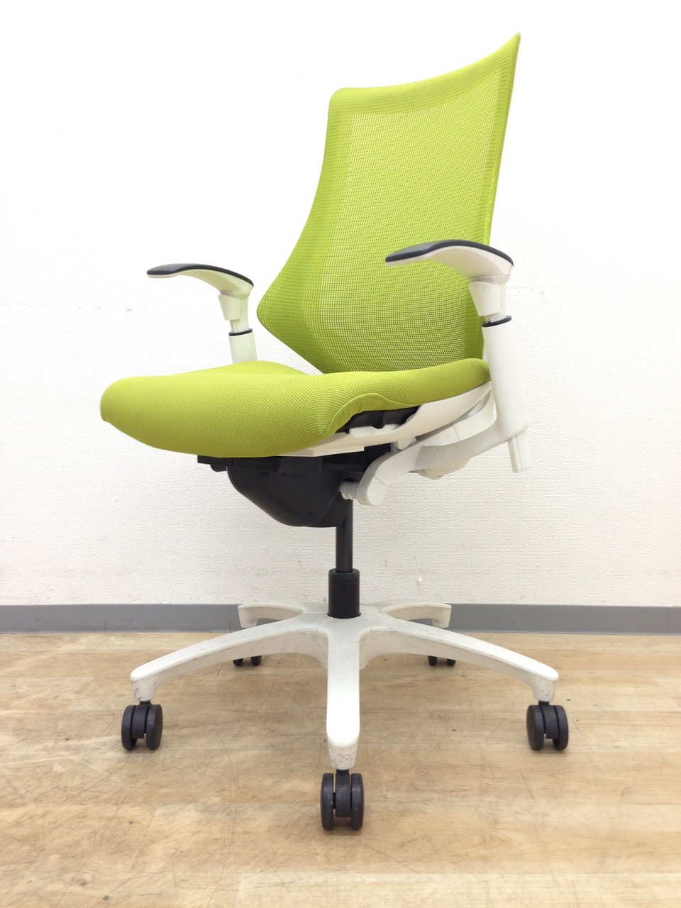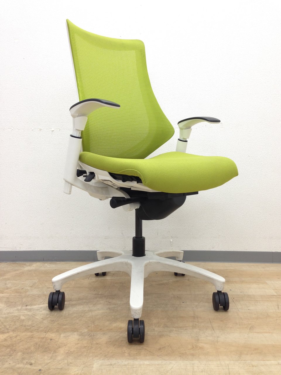 イトーキ製 エフチェア ライトグリーン ホワイトフレーム