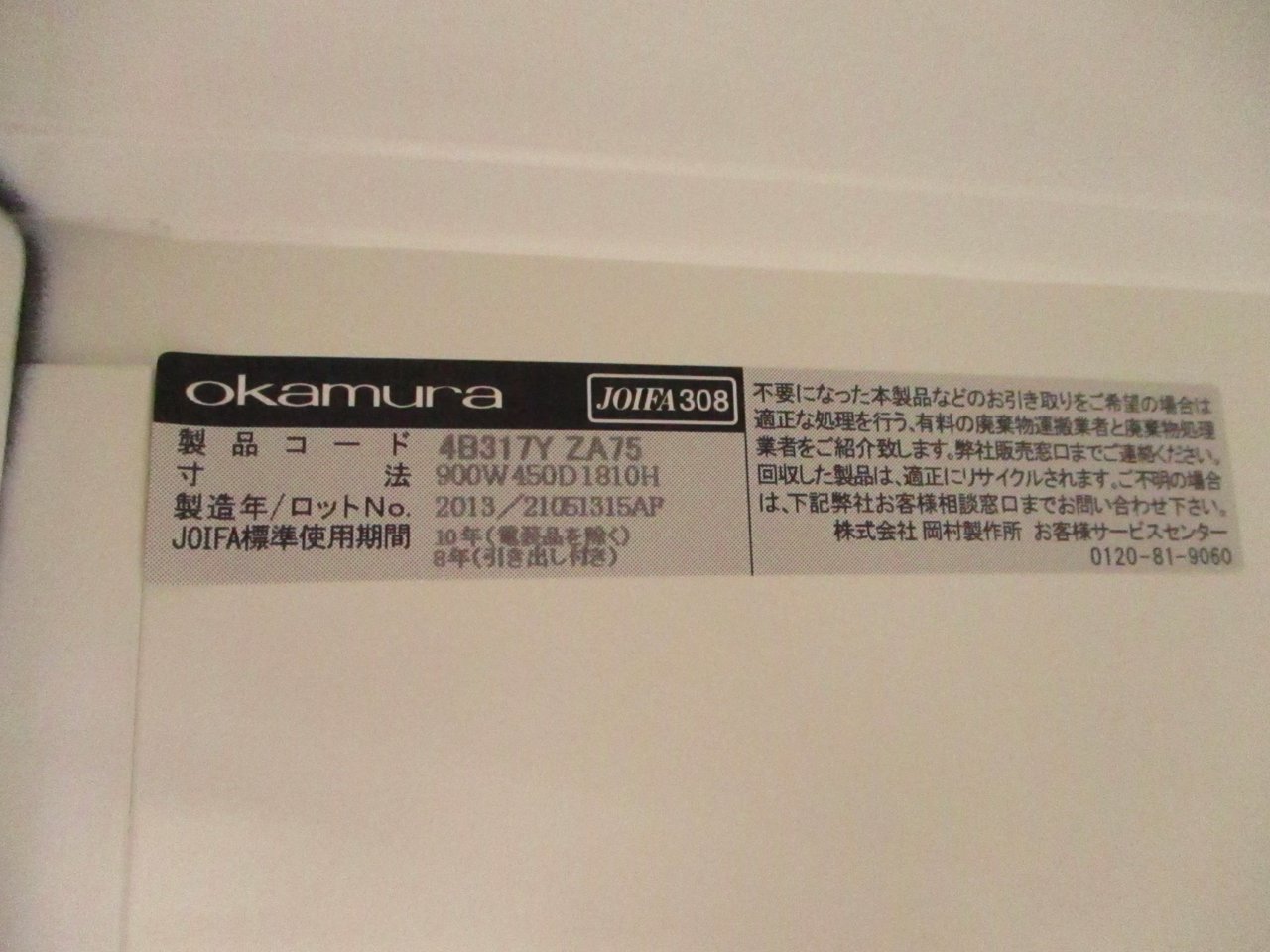 - 一部不具合ありそ引出の開閉不可、施錠不可、棚板無しといったの書庫の本来の効用を果たすための機能以外の一部が使用不可(例、扉、引出の開閉がしづらいなどがある。 )