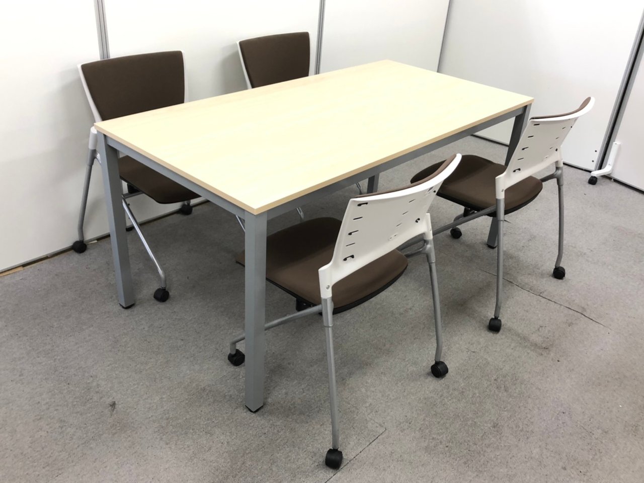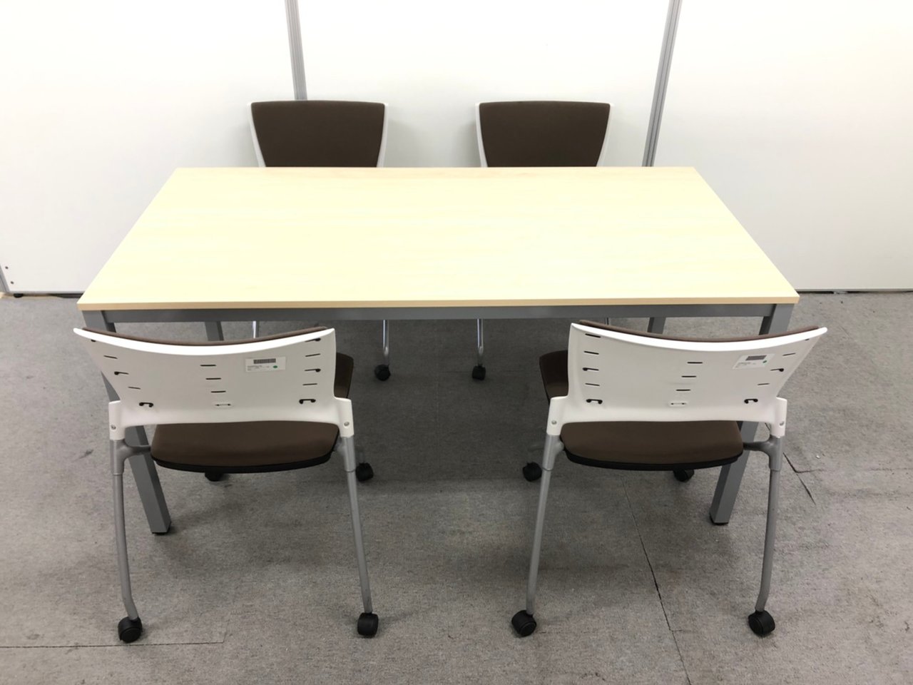 【木目調のテーブルとミーティングチェア4脚セット】シックで落ち着いたセット商品- 足立・葛飾店