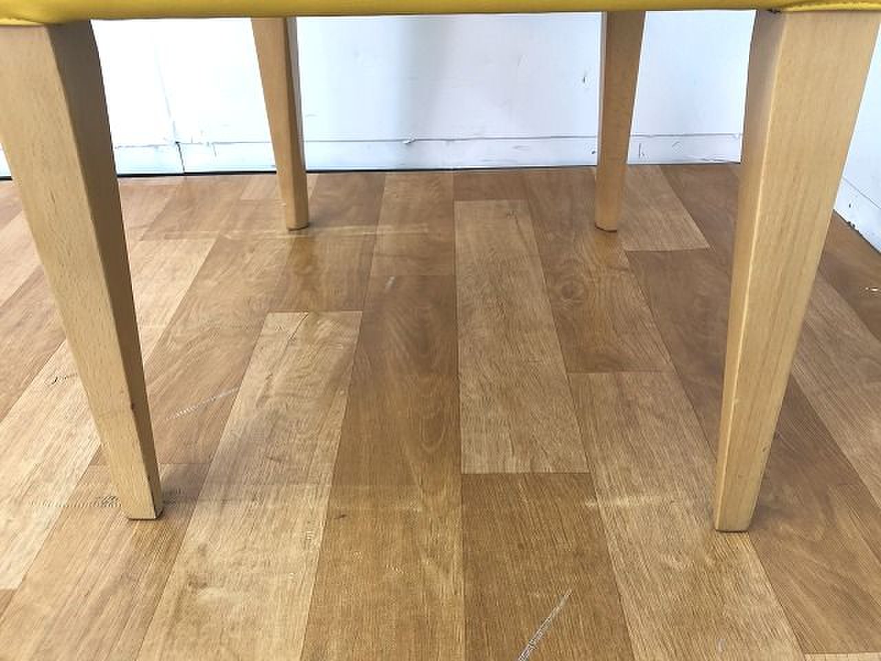 - かなり強い濃い黄ばみ・変色が商品全体にある。(例、座面・背もたれ、脚部等にある。)