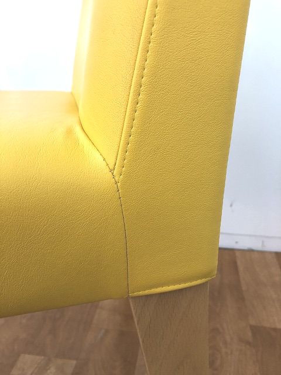 明るいイエローカラーで脚は木製になります。