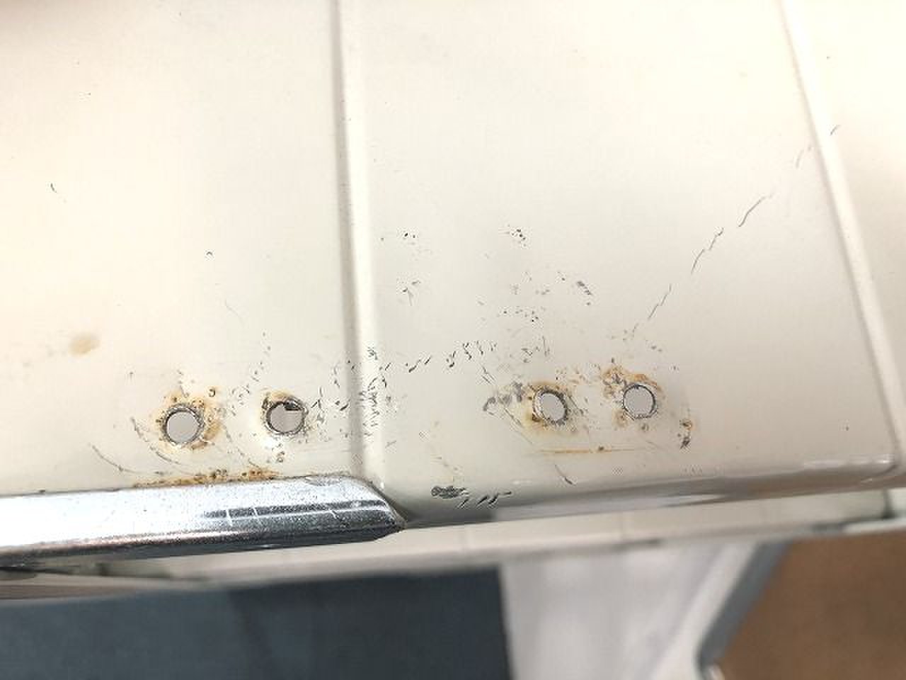 - あり黄ばみ・変色が広い範囲にうっすらある、または濃い黄ばみ・変色が一部ある。(例、天板、正面、背部、サイド部分にある。)