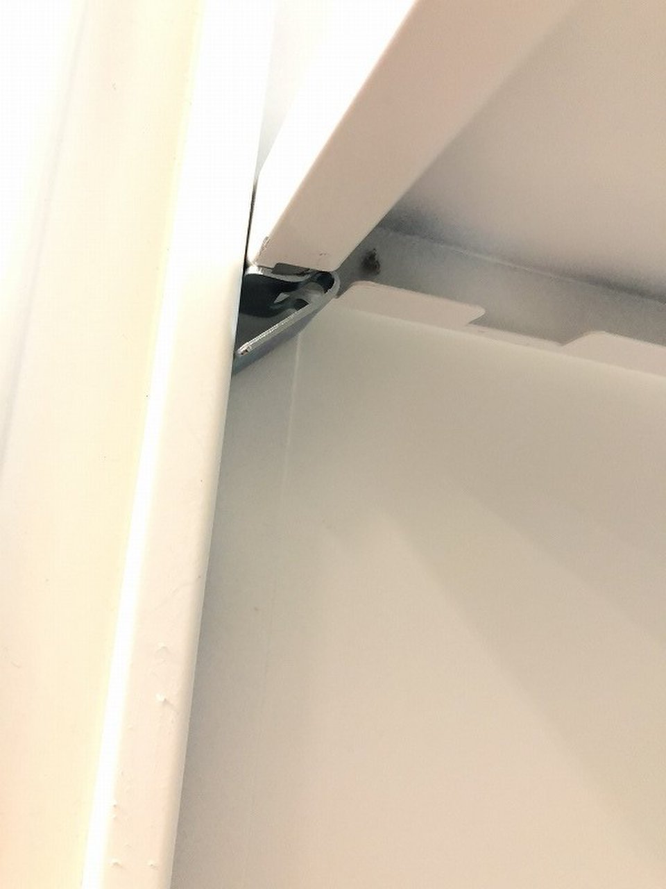 - 扉や引出しに、ラッチ機構を装備。地震時に勝手に扉や引出しが開き、収納物がユニットから飛び出すのを抑制します。