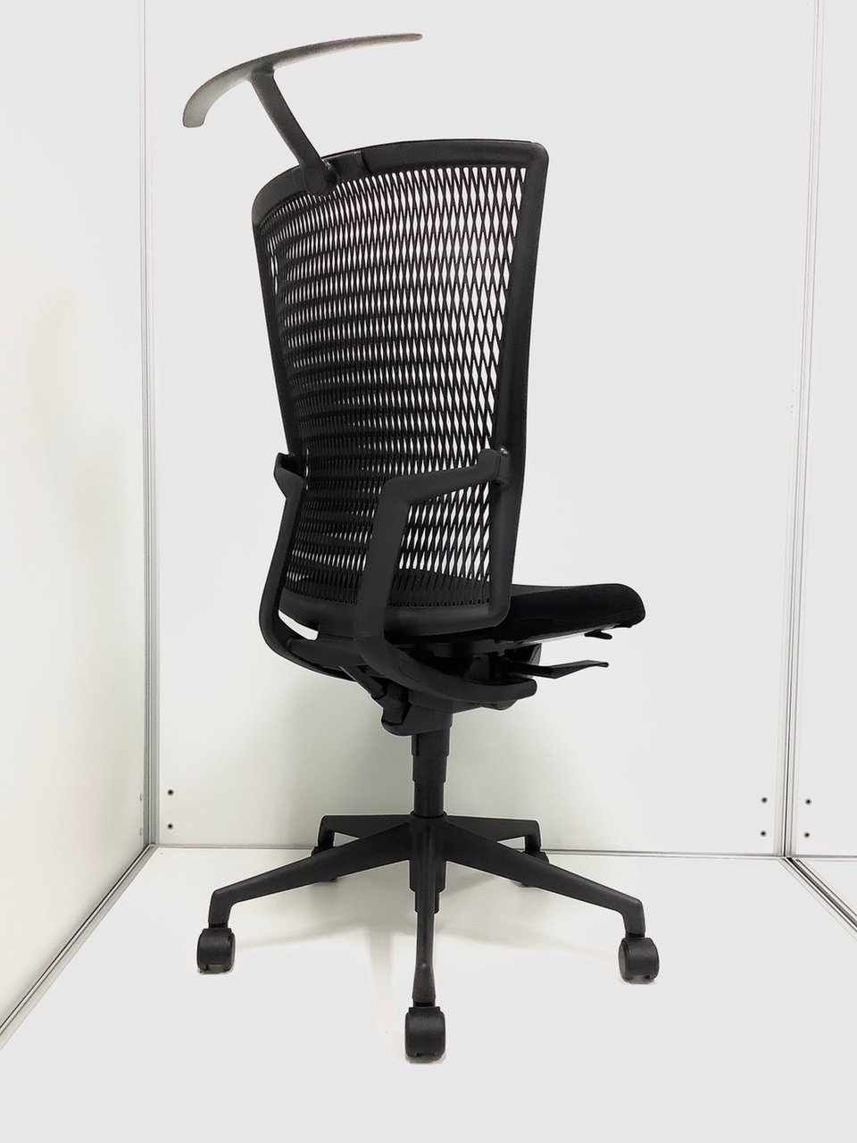 独自開発の樹脂メッシュの背もたれと、それを支える左右独立したアーム構造により、