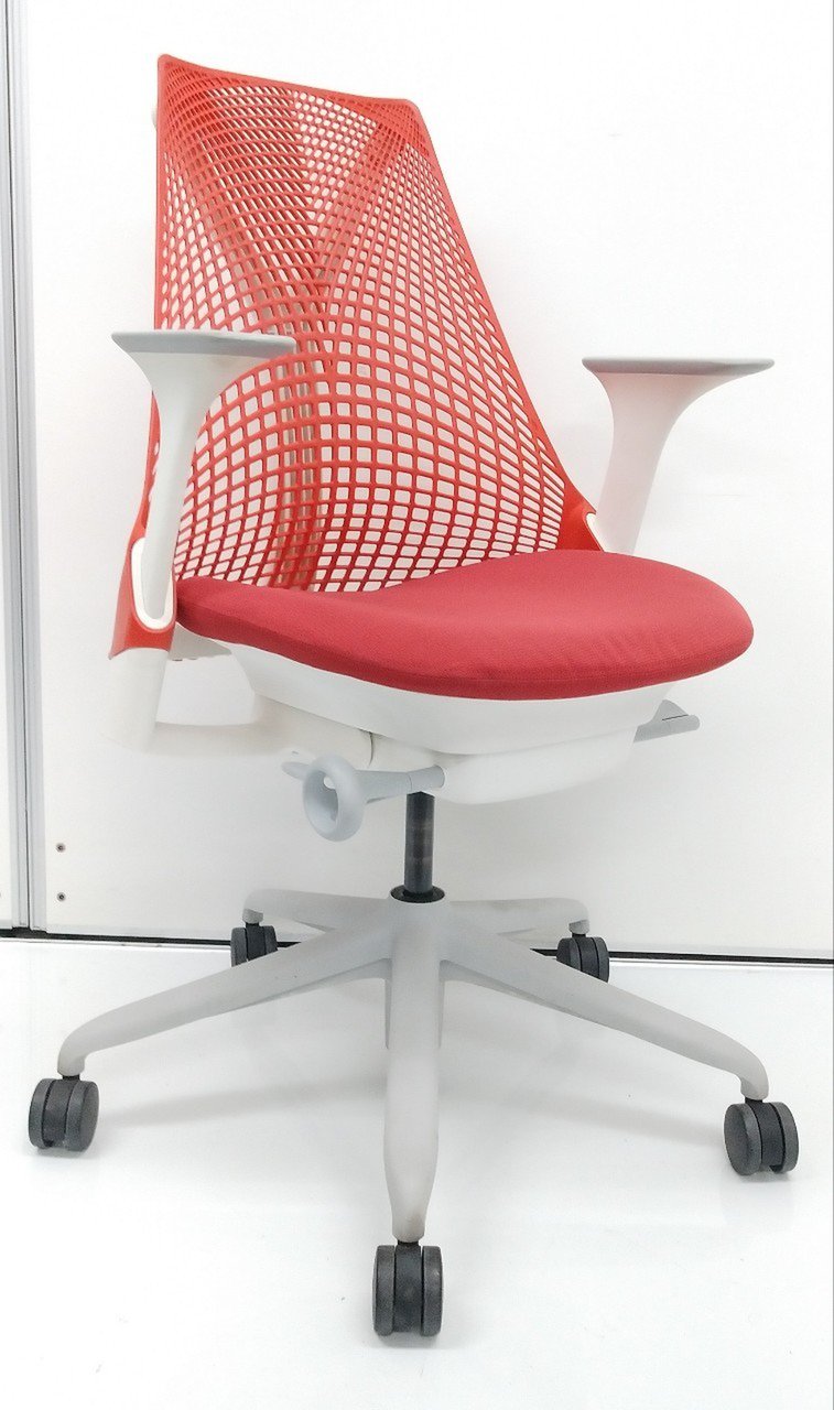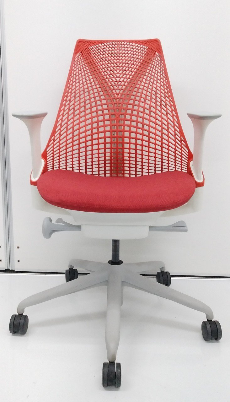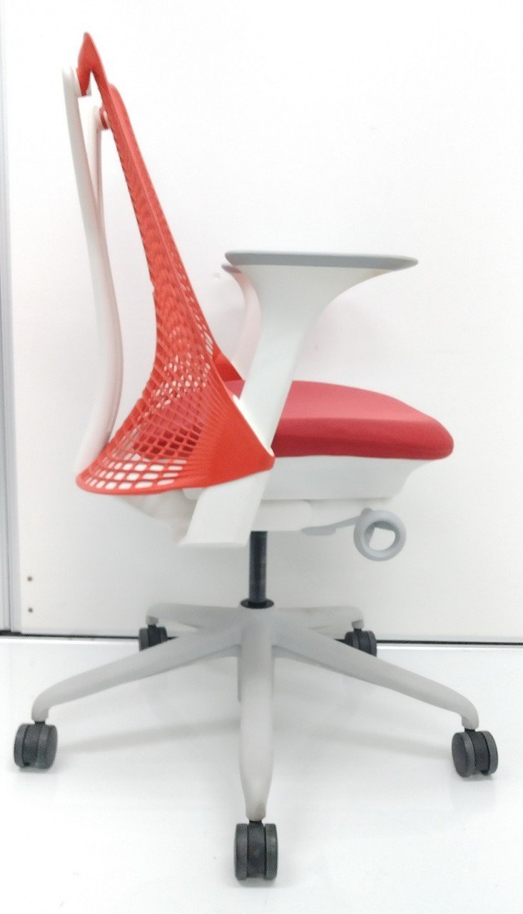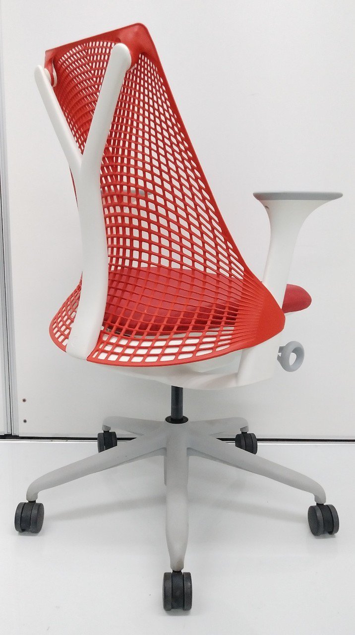 【人気チェア!】【セイルチェア】ホワイトフレーム サスペンションミドルバック|明るいレッド【hi_class】【クリーニング済】- 日本橋店