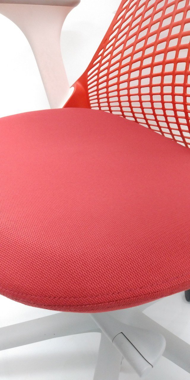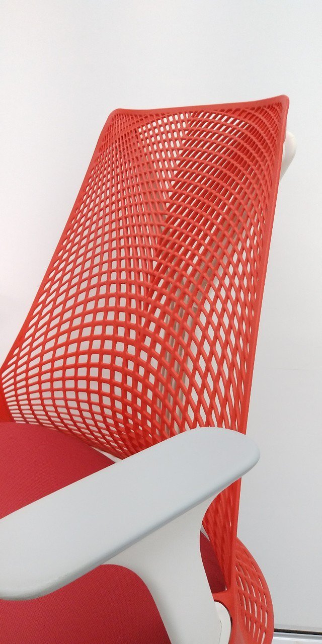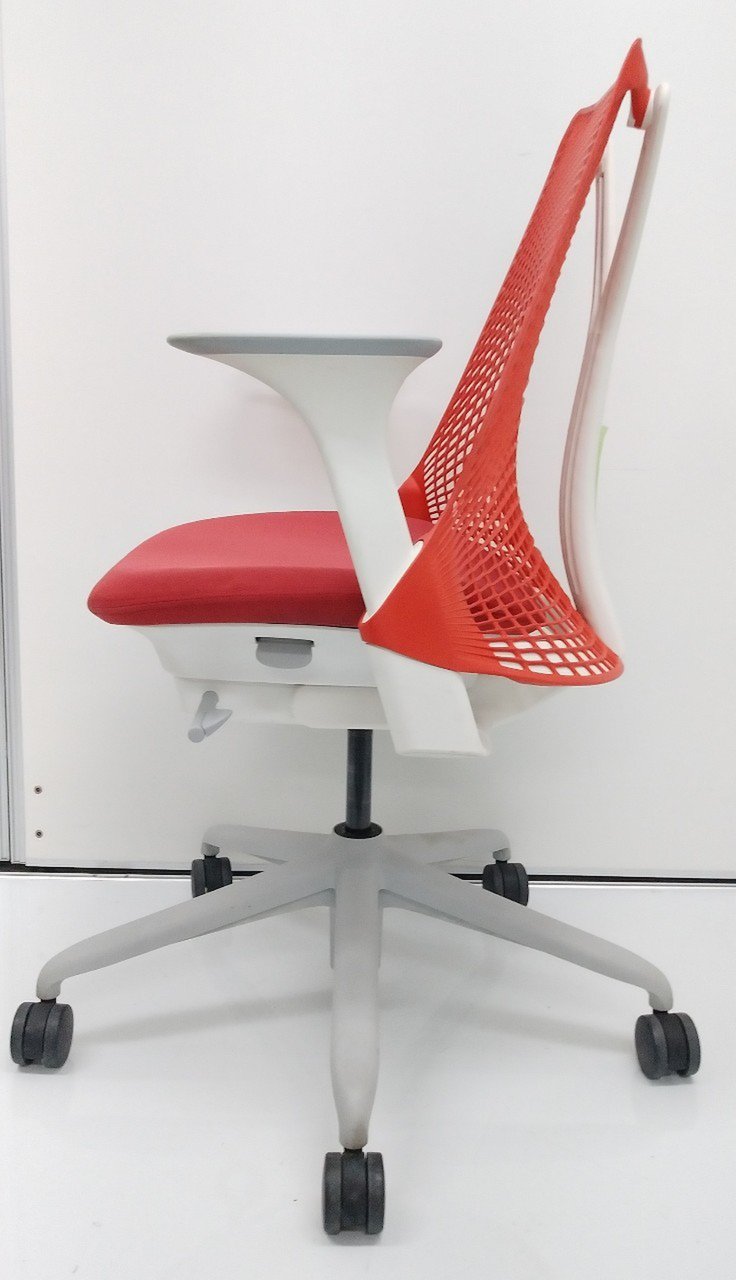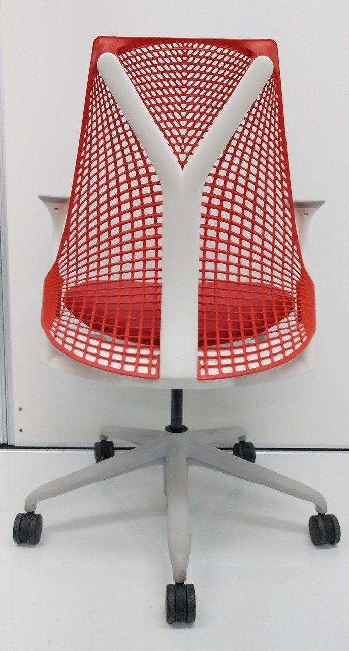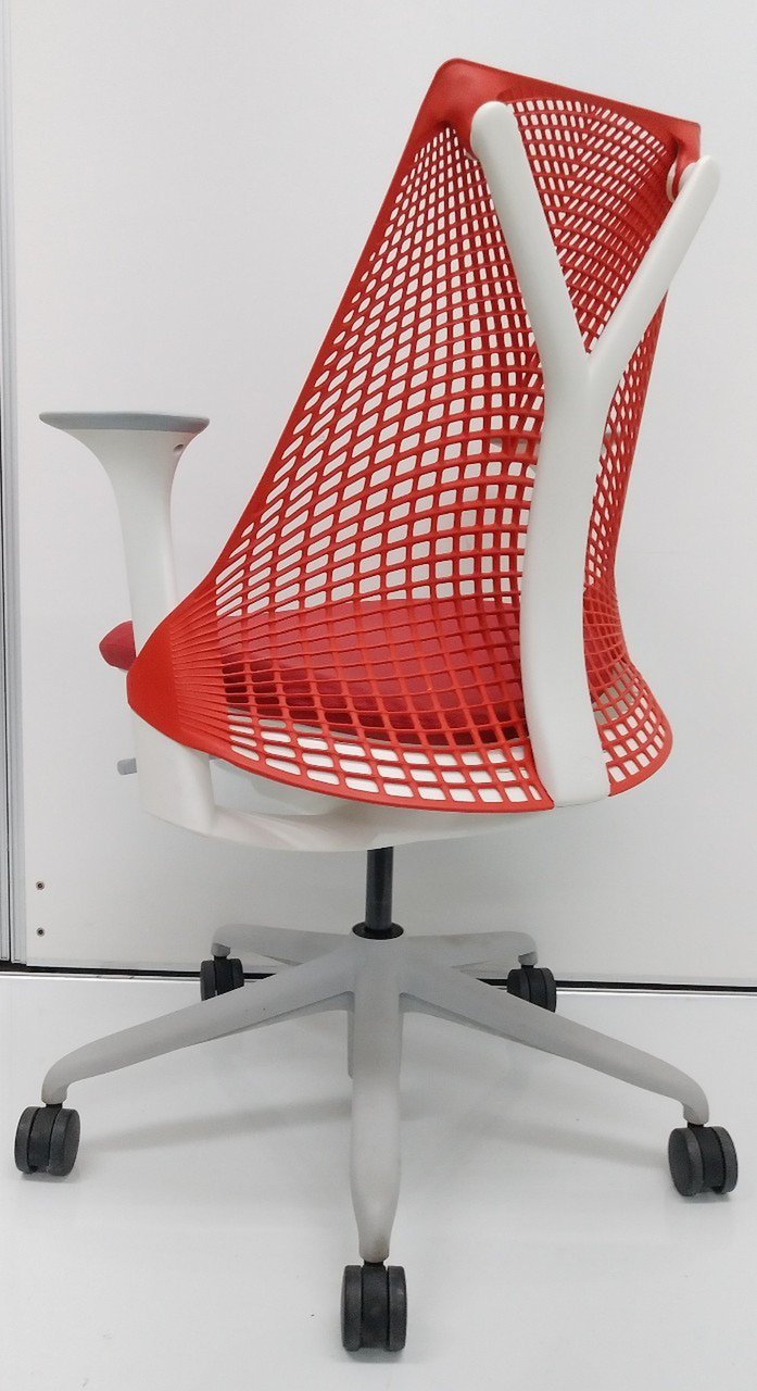 【人気チェア!】【セイルチェア】ホワイトフレーム サスペンションミドルバック|明るいレッド【hi_class】【クリーニング済】- 日本橋店